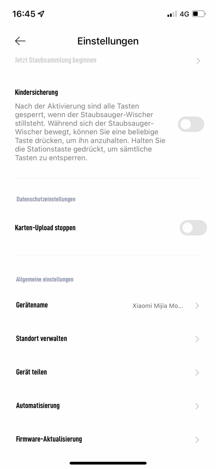 | Kindersicherung | Die Tasten des Roboters und der Absaugstation können über die App gesperrt werden. |