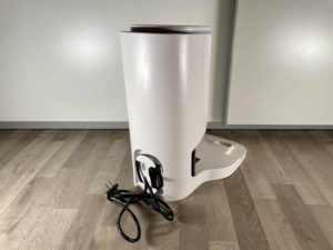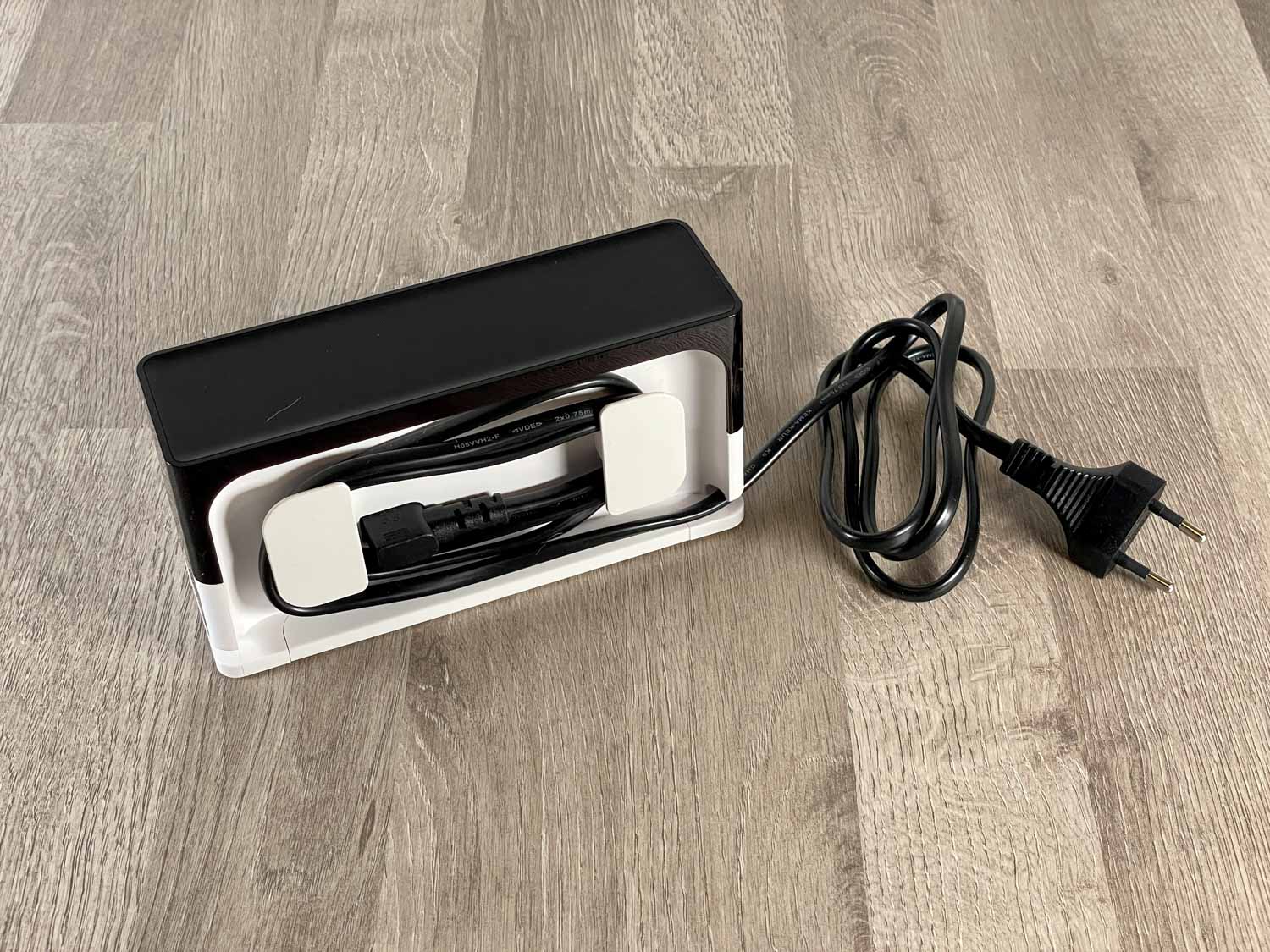 Da der yeedi vac 2 pro einzeln geliefert wird, befindet sich natürlich eine Ladestation in dessen Lieferumfang. Diese ist eine originale ECOVACS Ladestation, die jeder Roboter der verwandten Firma mit auf seinen Weg bekommt. Einen kleinen Unterschied gibt es jedoch trotzdem. Nun ist die Ladestation in Weiß gehalten, was ich so noch nie gesehen habe. Ein Kabelmanagement auf der Rückseite verhindert unschönen Kabelsalat.