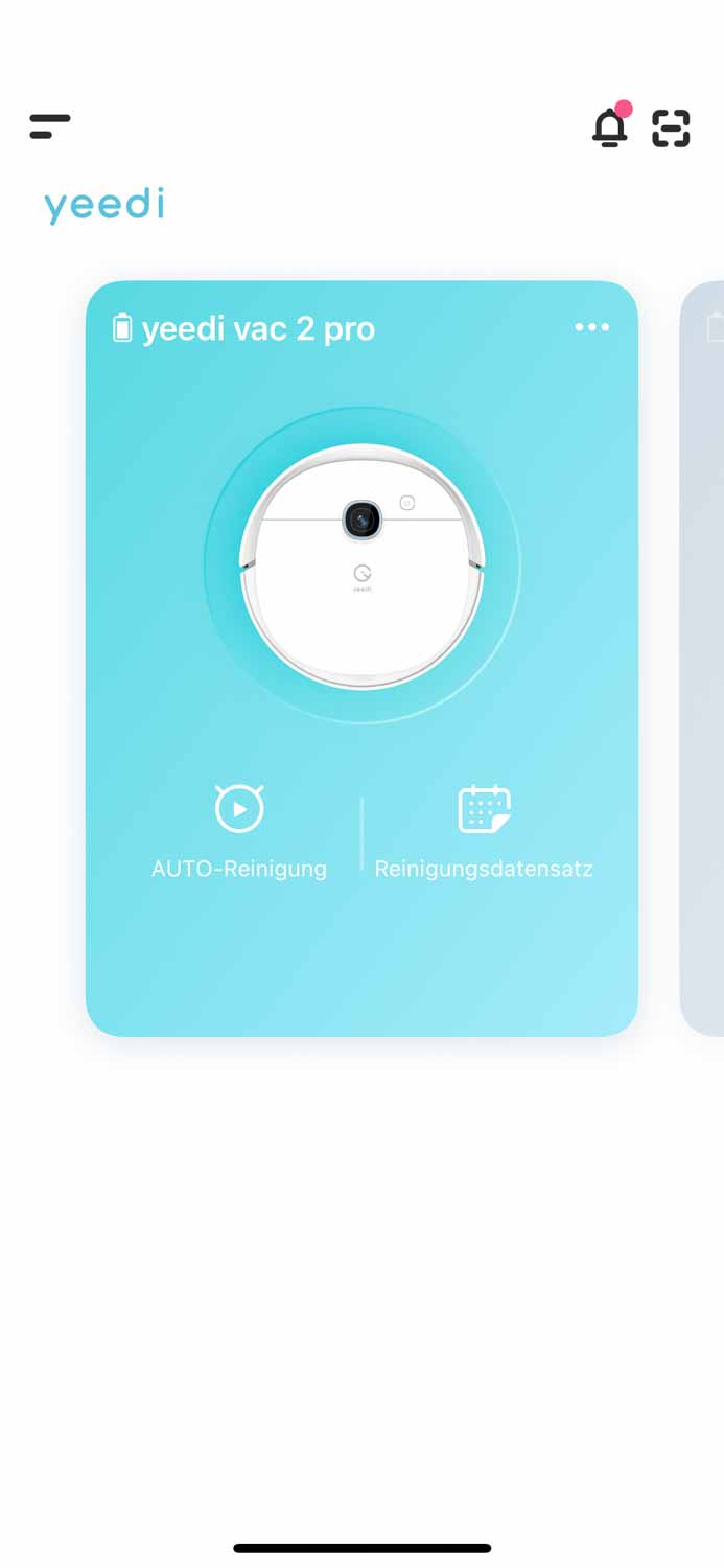 Die App des yeedi vac 2 pro