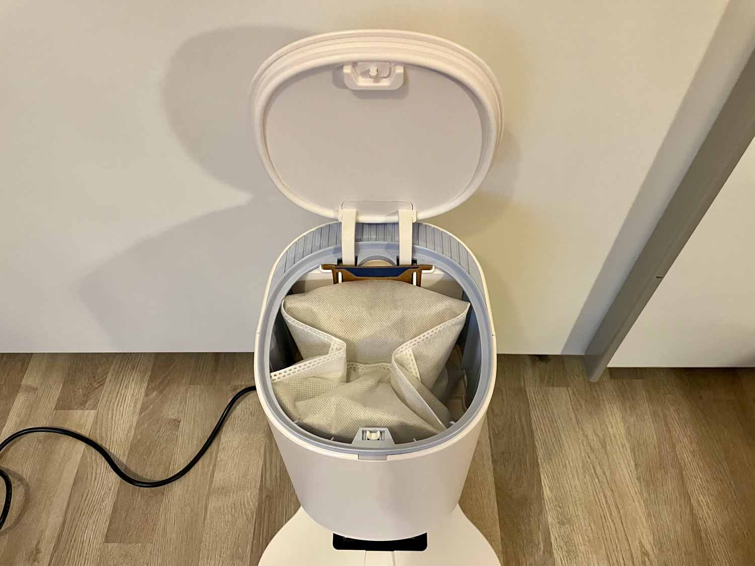 Der Staubbehälter wird, durch diese Station, immer restlos aussaugt. Wenn er jedoch zu voll sein sollte, kann es schon mal vorkommen, dass es die Station nicht schafft. Dann muss händisch eingegriffen werden. Bei einer täglichen Reinigung fällt aber nie so viel Schmutz an. Die Absaugstation kann nur mit Beuteln benutzt werden. Eine beutellose Variante ist nicht verfügbar.