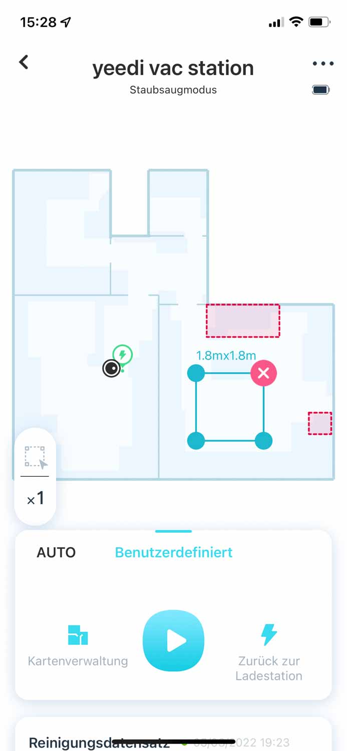 In der App sind mir persönlich zu wenige Einstellmöglichkeiten vorhanden. Das Anpassen der Absaugstation wäre nett gewesen, jedoch nicht unbedingt notwendig. Leder lässt sich kein Sauggang leistungstechnisch an jeden einzelnen Raum anpassen, sondern entweder alles oder nichts. Das manuelle Bearbeiten der Raumaufteilung ist nicht möglich und so kann es vorkommen, dass der yeedi vac station falsche Räume in die Karte einzeichnet, was nicht mehr rückgängig gemacht werden kann.