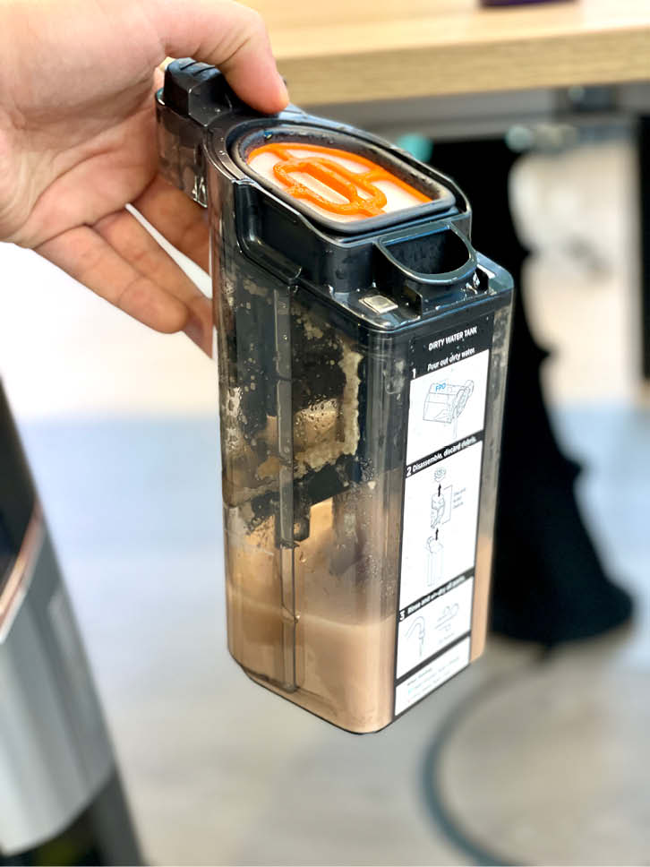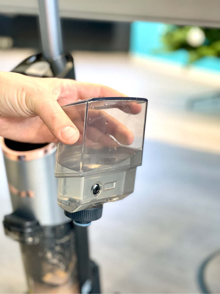 Der Shark Hydrovac besitzt ein Zwei-Tank-System, wodurch seine Bürstenrolle permanent mit Frischwasser versorgt wird. Die aufgenommenen Verschmutzungen werden über einen Kanal in den Schmutzwassertank befördert, welcher sich einfach und komfortabel entleeren lässt. Dank seiner Selbstreinigungsfunktion wird die Rolle automatisch mit frischem Wasser gespült, was den manuellen Reinigungsaufwand deutlich minimiert.