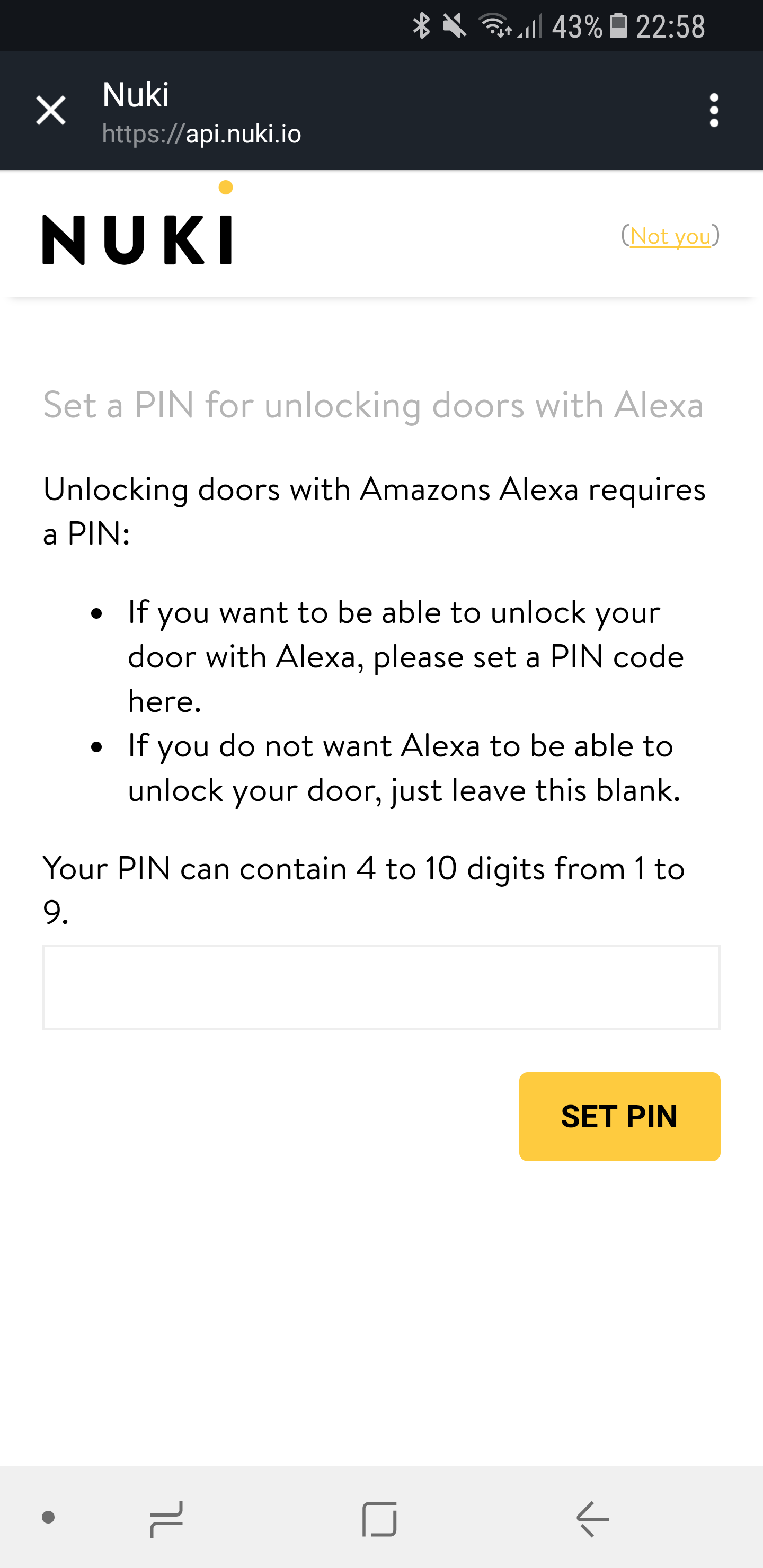 - Des weiteren müsst ihr noch einen Pin vergeben, um eure Tür auch per Sprache aufsperren zu können.