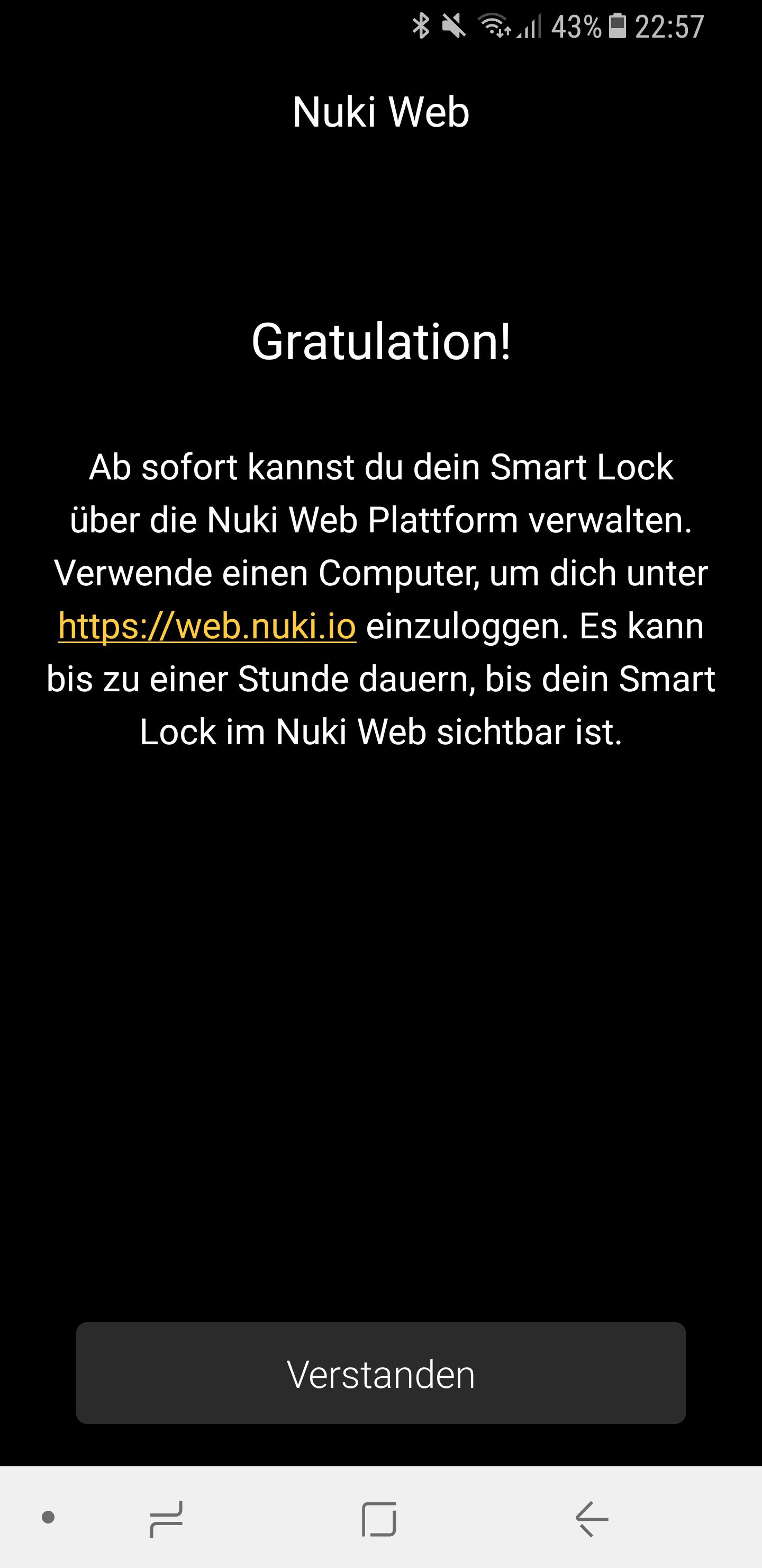 - Das Türschloss von Nuki einrichten und in Betrieb nehmen