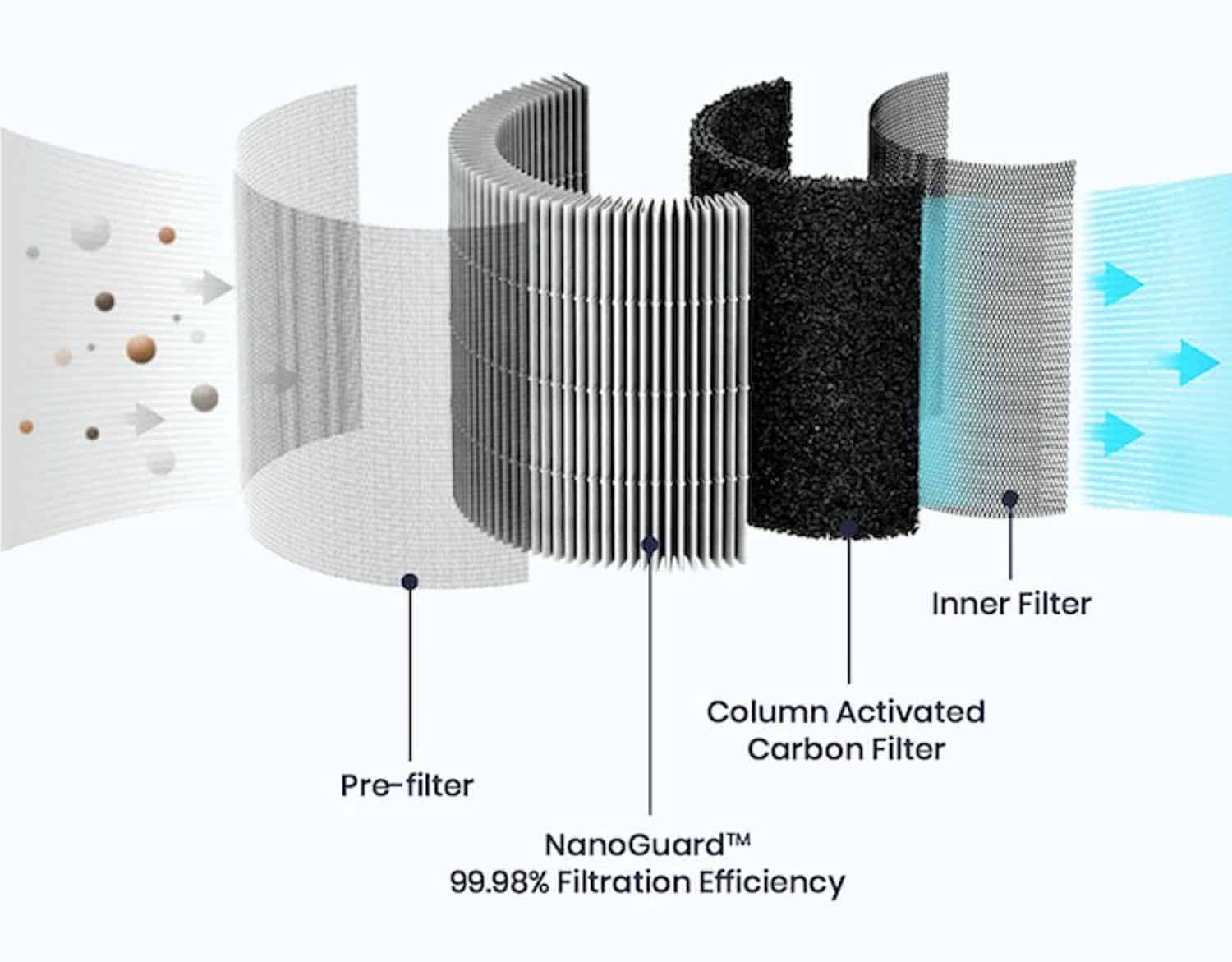 Dank eigener Smartmi Link App kannst du ganz einfach die Luftwerte und Leistung des Geräts abrufen. Wenn du keine App nutzen möchtest, kannst du ihn auch komplett ohne diese in HomeKit integrieren oder ihn über seine Touch-Oberfläche bedienen. Die NanoGuard-Filtertechnologie und ein integrierte Aktivkohlefilter sorgen nicht nur für eine partikelfreie Raumluft, sondern auch für die restlose Entfernen von Gerüchen aller Art. Kochgerüche, Haustiergerüche und viele weitere werden einfach durch den 4-stufigen HEPA-Filter vernichtet. Der Filter entfernt Partikel mit einer Effizienz von 99,98 Prozent.