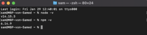 Mit dem Befehl npm -v gilt das selbe für Node Package Manager.