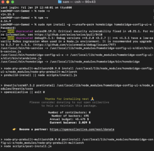 - sudo npm install -g –unsafe-perm homebridge homebridge-config-ui-x