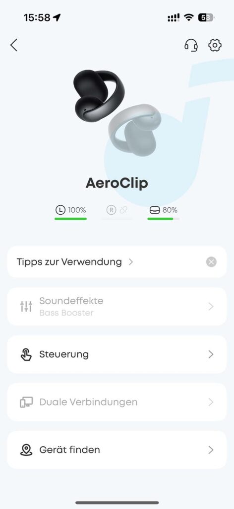 Kommen wir zum Praxistest und damit meinem ersten Eindruck der Soundcore AeroClip: