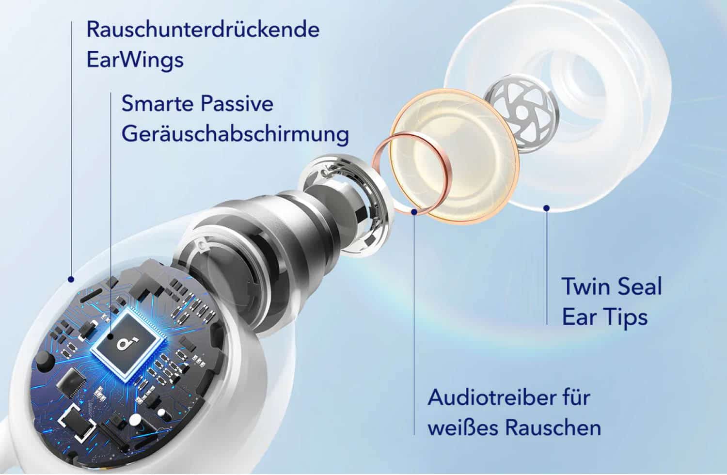 Anker hat mit Soundcore neue In-Ear Kopfhörer entwickelt, die dich beim Schlafen unterstützen sollen. Die neuen Earbuds besitzen ein vierschichtiges Geräuschunterdrückungssystem, das bis zu 35 dB Lärm filtern kann. Sleep A10 verwendet zudem beruhigende Schlafgeräusche, die dich wohlgesonnen in den Schlaf wiegen können.