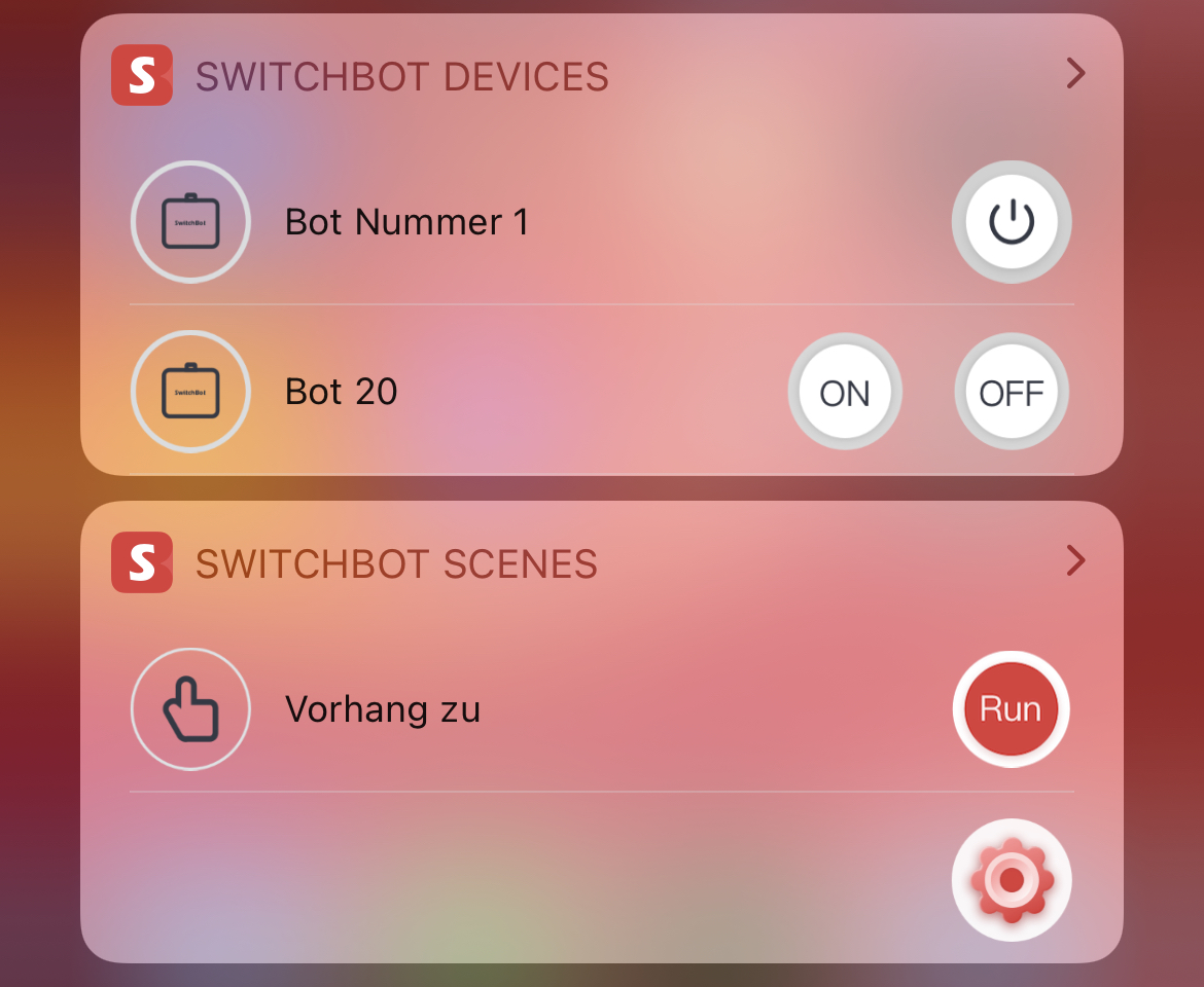 Da auch Szenen in Widgets integriert werden können, kann man auch die anderen Geräte einfach über die Widgets steuern. In meinem Fall zum Beispiel für die Steuerung der Vorhänge mit dem SwitchBot Curtain.
