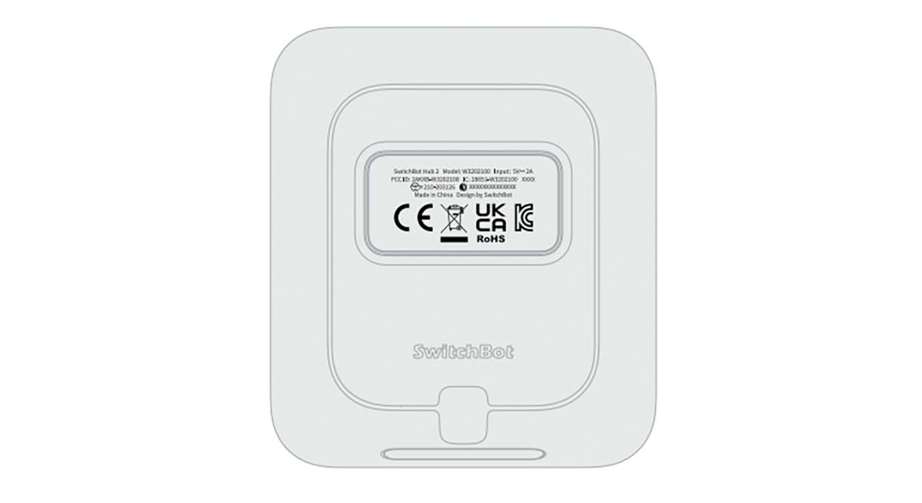 Der SwitchBot Hub wird verwendet, um die Produkte des Herstellers auch aus der Ferne steuern zu können. Ohne den Hub lassen sich die verschiedenen IoT-Gadgets nur via Bluetooth bedienen. Der neue SwitchBot Hub 2 ist auf der Skizze nur von der Rückseite zu sehen und hat offenbar einen leicht veränderten Formfaktor, welcher aber nur gering von der bisherigen Variante abweicht.