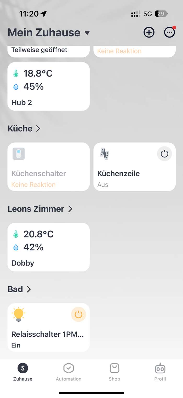 Auch die Steuerung über Apple Home ist möglich, da die Relais Switches, wie bereits erwähnt, mit Matter kompatibel sind. Dies bringt natürlich dann deutlich mehr Optionen für smarte Automationen mit sich.