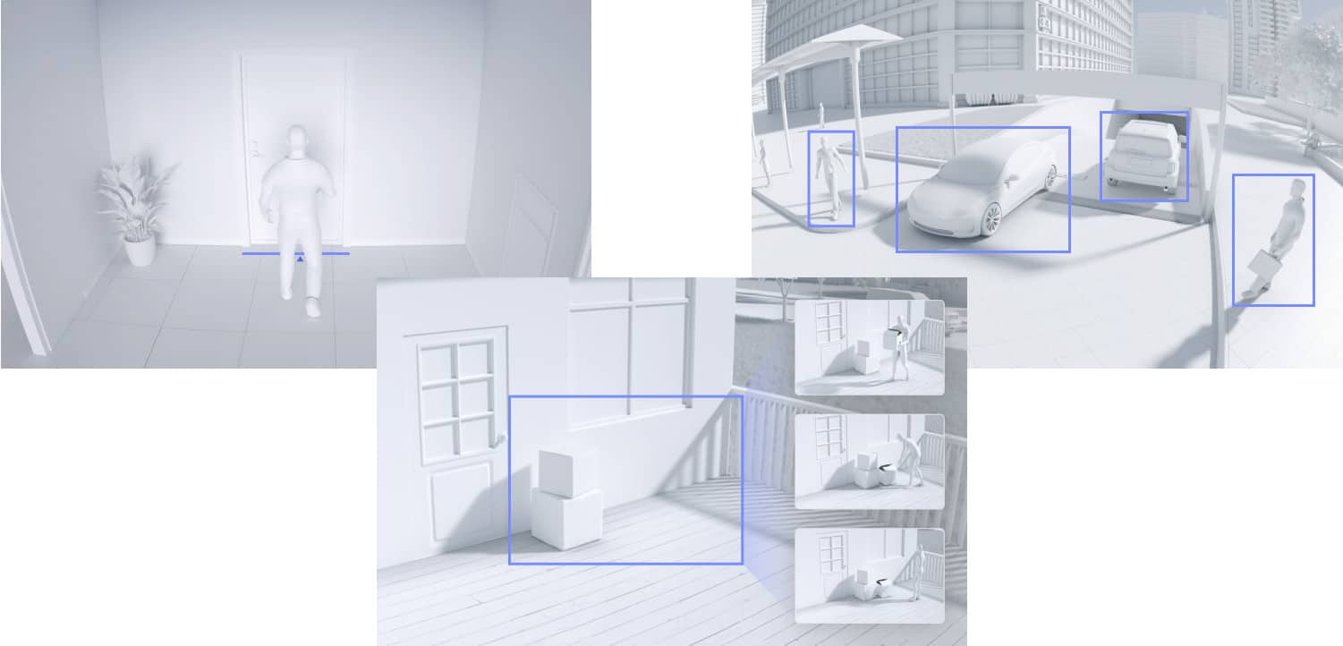 Eine eingebaute KI hilft bei der Überwachung des Eigentums. Die Kameras können mit hoher Genauigkeit Personen und Fahrzeuge von anderen beweglichen Objekten unterscheiden. Es ist zudem möglich, virtuelle Grenzen zu ziehen. Bei einer Überschreitung wird man sofort benachrichtigt. Ebenso sind Vorfälle unmittelbar, nachdem sie aufgetreten sind, analysierbar. Dank Instant Search kannst du nach relevanten Aktivitäten in einem bestimmten Bereich filtern.