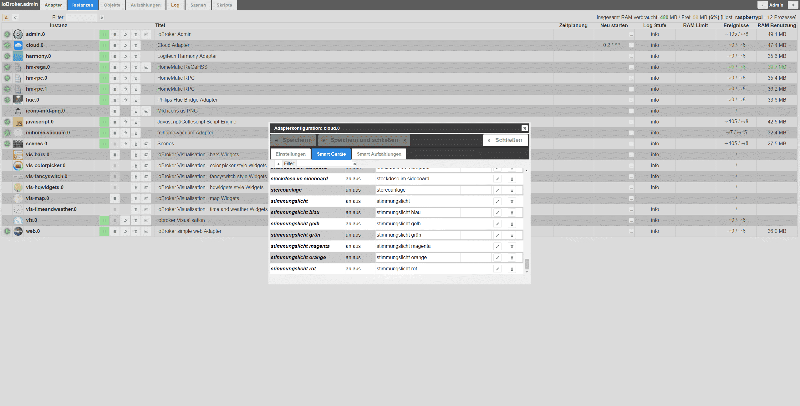Im Vorletzten Artikel „Adapter in ioBroker installieren“ erklärte ich euch bereits, wie ihr Adapter installieren könnt. Im Letzten dann, wie ihr „ioBroker mit Amazon Alexa verbinden“ könnt. Um nun Szenen in ioBroker erstellen und mit Amazon Alexa steuern zu können, müsst ihr diese beiden Schritte bereits erledigt haben. Ihr solltet also den Cloud Adapter für Amazon Alexa und den Szenen Adapter für die Szenen installiert haben. Je nach dem, was ihr mit der Szene machen möchtet, benötigt ihr dafür weitere Adapter. In meinem Beispiel also den Hue Adapter.