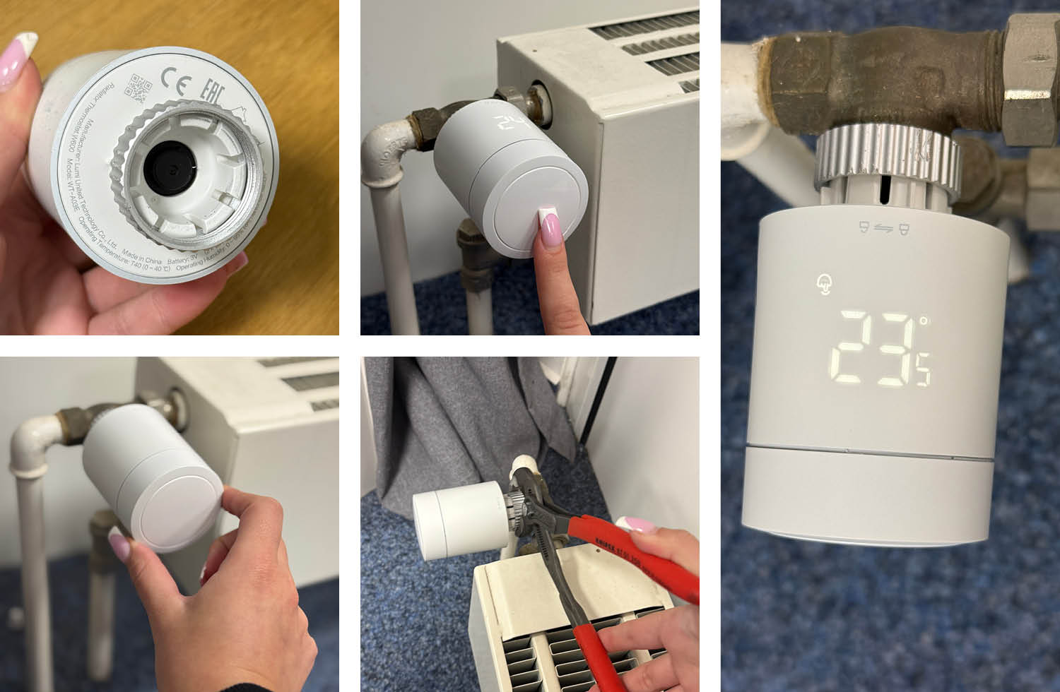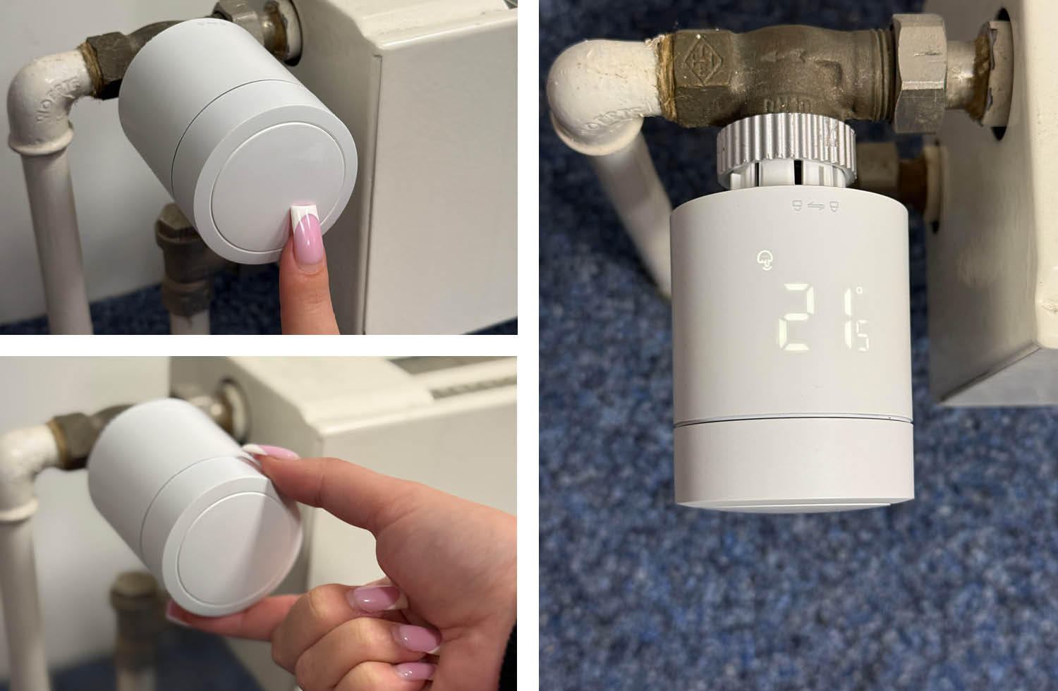 Die Installation des Aqara W600 verläuft unkompliziert und ist in wenigen Minuten abgeschlossen. Nach dem Entfernen des alten Thermostats wird, falls nötig, einer der mitgelieferten Adapter auf das Heizungsventil geschraubt. Anschließend lässt sich das W600 über die vormontierte Überwurfmutter fest am Ventil befestigen, wodurch es stabil und sauber sitzt. Sobald das Gerät gestartet ist, folgt direkt die Kalibrierung, die über die Taste auf der Vorderseite ausgelöst wird.