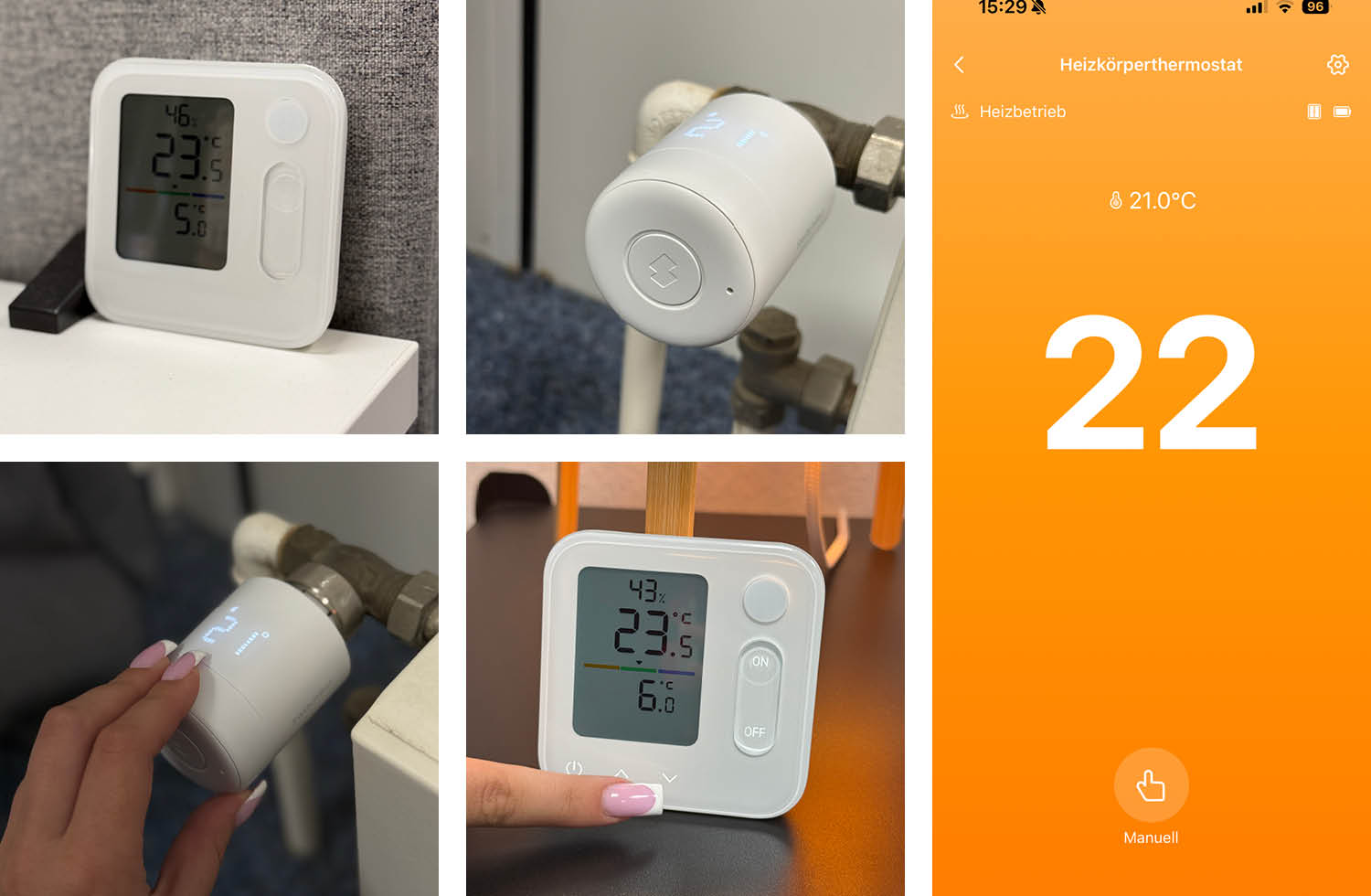 Das Thermostat lässt sich sowohl manuell als auch über die App bedienen.