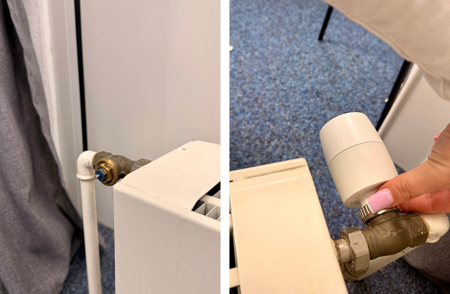 Die Installation des KE100 ist unkompliziert. Zunächst entfernt man das alte Thermostat und befestigt anschließend das neue Gerät mit der Überwurfmutter am Ventil. Je nach Heizkörper verwendet man dafür einen der beiliegenden Adapter. Nachdem man die Batterien eingesetzt hat, startet das Thermostat automatisch und lässt sich anschließend mit der Bridge koppeln. Die gesamte Installation dauert nur wenige Minuten.
