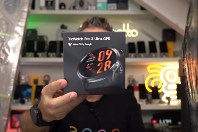Ein YouTuber hat nun die Verpackung der TicWatch Pro 3 Ultra in die Kamera gehalten und wie es aussieht wird es eine GPS und eine LTE Variante geben. Vom Design her ist es eine runde Smartwatch mit zwei Funktionstasten an der Seite. Auf dem Bild lässt sich ganz verschwommen eine Lünette erkennen.