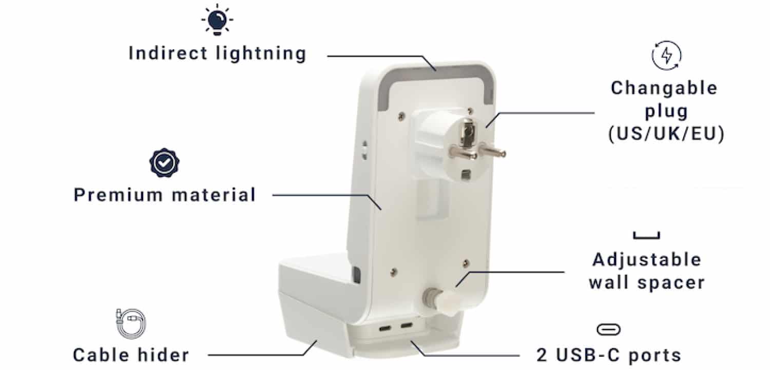 Einmal eingesteckt, kann das etwa 97 × 82 × 160 mm große Lademodul, mit einer Ladeleistung von 24 Watt, nicht nur deine Geräte laden, sondern bietet auch eine komfortable Ablagefläche für verschiedenste Dinge. So kannst du etwa das Gerät an deiner Haustüre einstecken und darauf die Powerbank laden und gleichzeitig deine Schlüssel ablegen.