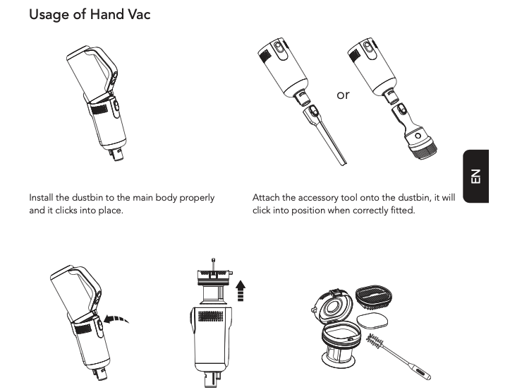 So ist der Aufbau erstmal dem normalen Floor One S5 sehr ähnlich. Es gibt auch hier die neue Bürste, die einen viel kleineren Abstand zur Kante bietet und auch den neuen, größeren Wassertank auf der Rückseite. Allerdings gibt es nun auch einen Griff an der Stelle, wo beim Floor One S3 sonst der Wassertank platziert ist. Hier kann man scheinbar den Staubbehälter entnehmen und mit einem Saugaufsatz versehen, wie auf dem nächsten Bild aus der Anleitung zu sehen ist.