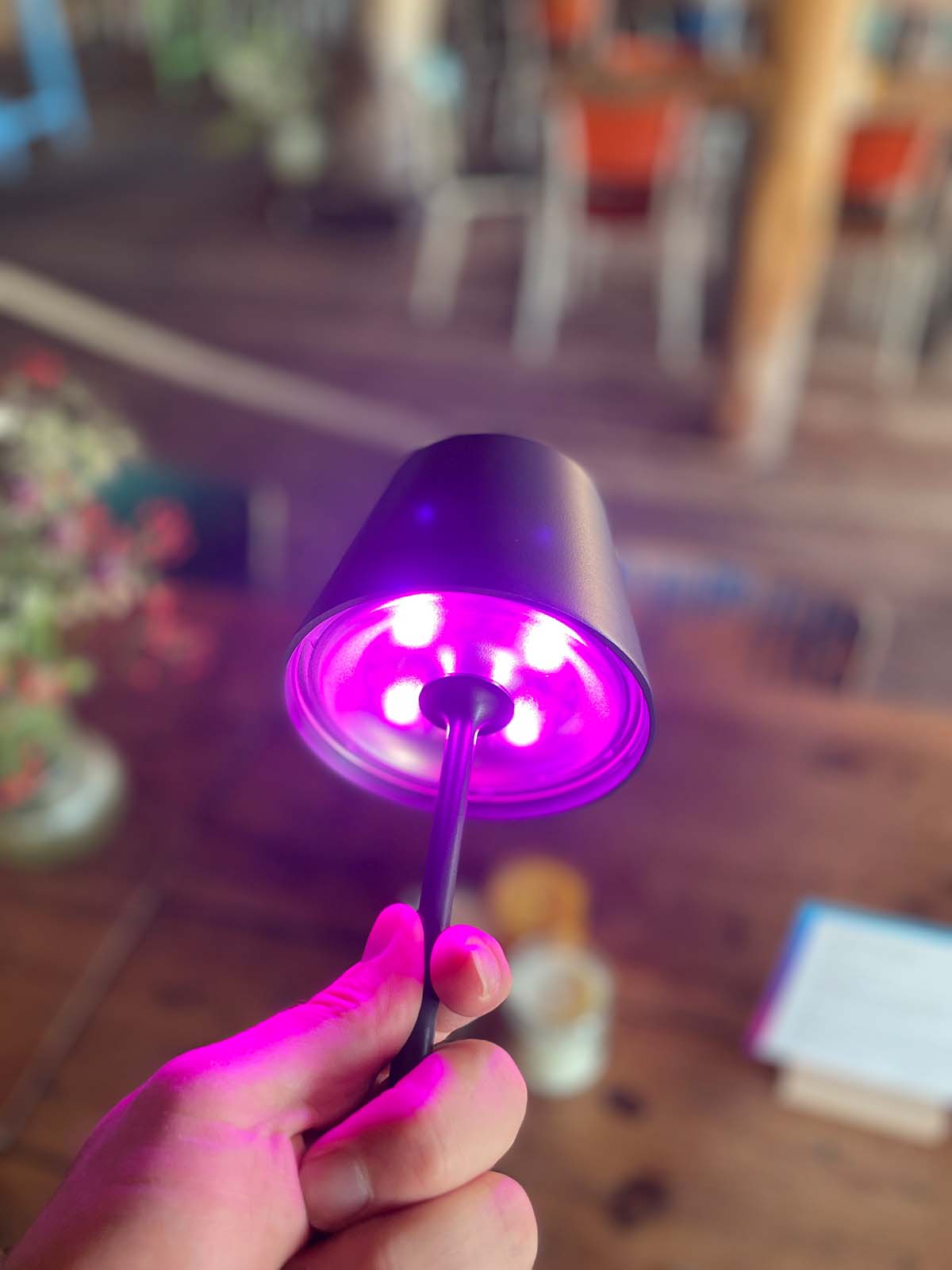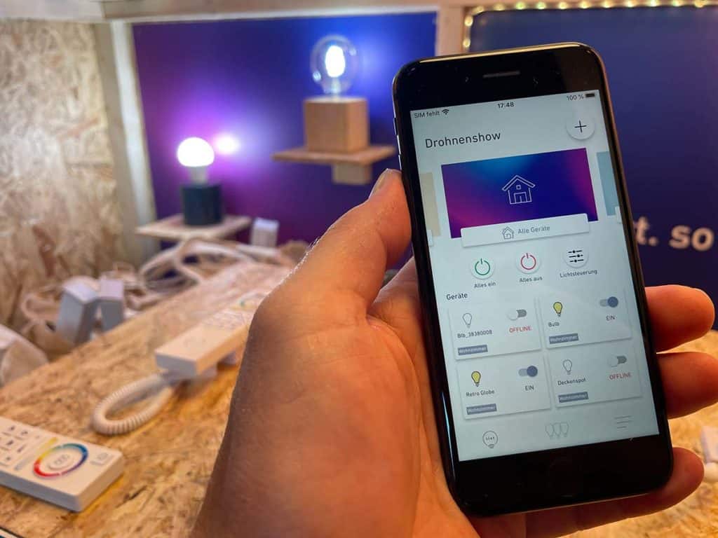 Das Highlight des Events ist, neben einer Drohnenshow zu späterer Stunde, eine neue Tischleuchte mit Akku, wie sie auch Philips Hue jüngst präsentiert hat. Interessant ist, dass die tint Tischleuchte zwei USB-C-Anschlüsse besitzt. Einer dient zum Laden der Leuchte und über den zweiten Anschluss lässt sich zum Beispiel ein Smartphone aufladen. Dadurch ist sie unter anderem auch für den Gastrobereich gut geeignet. Die Leuchte wird voraussichtlich nach IP54 zertifiziert sein und ist somit auch für den Einsatz auf der Terrasse geeignet.