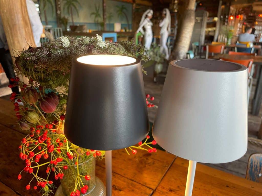 tint stellt auf einem Event in Hamburg sein Portfolio an smarter Beleuchtung vor. Ganz neu ist hierbei eine smarte Tischleuchte mit Akku, die tint Nolia.