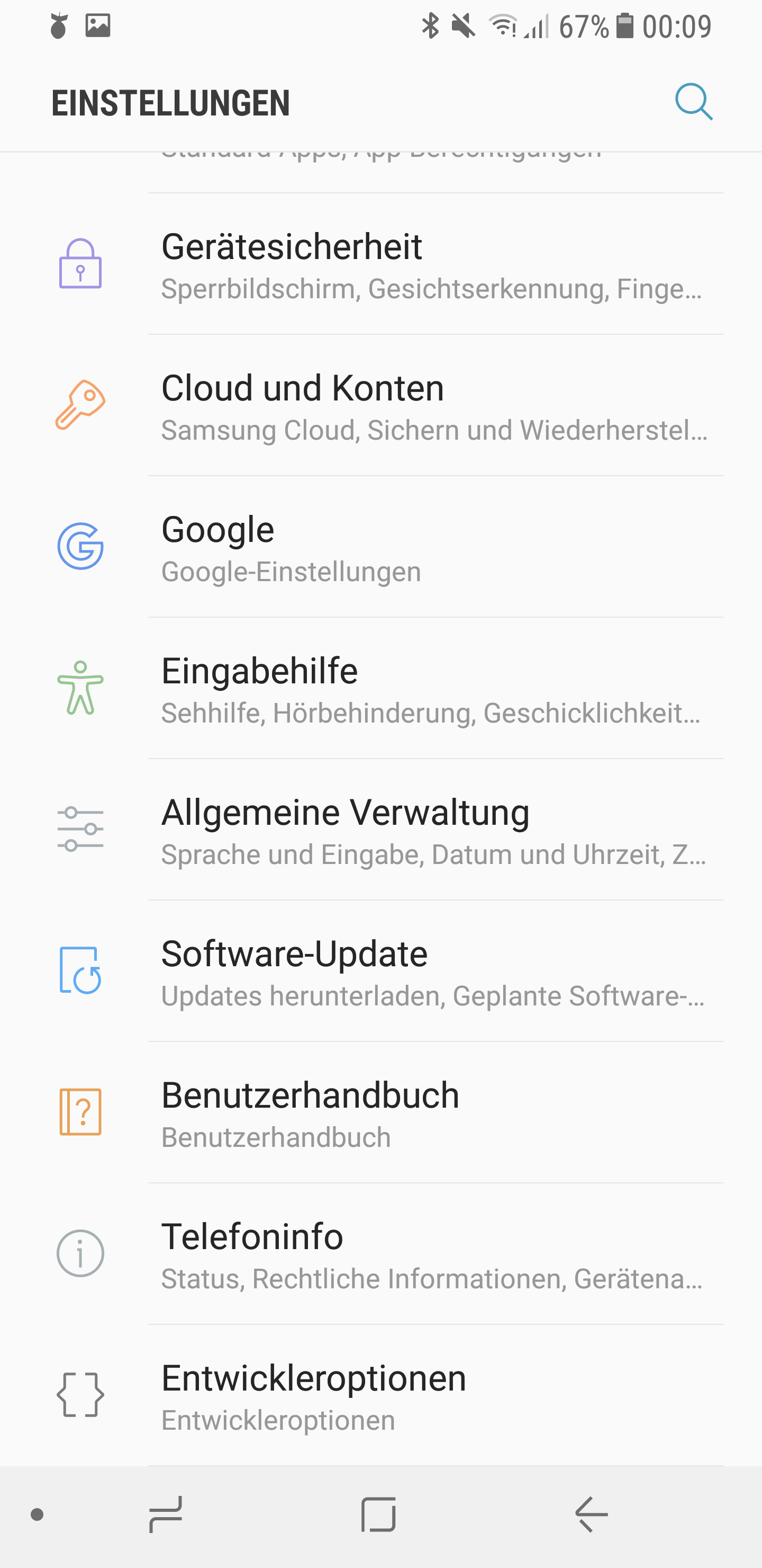 - Ihr seht einen neuen Eintrag mit dem Namen „Entwickleroptionen“.