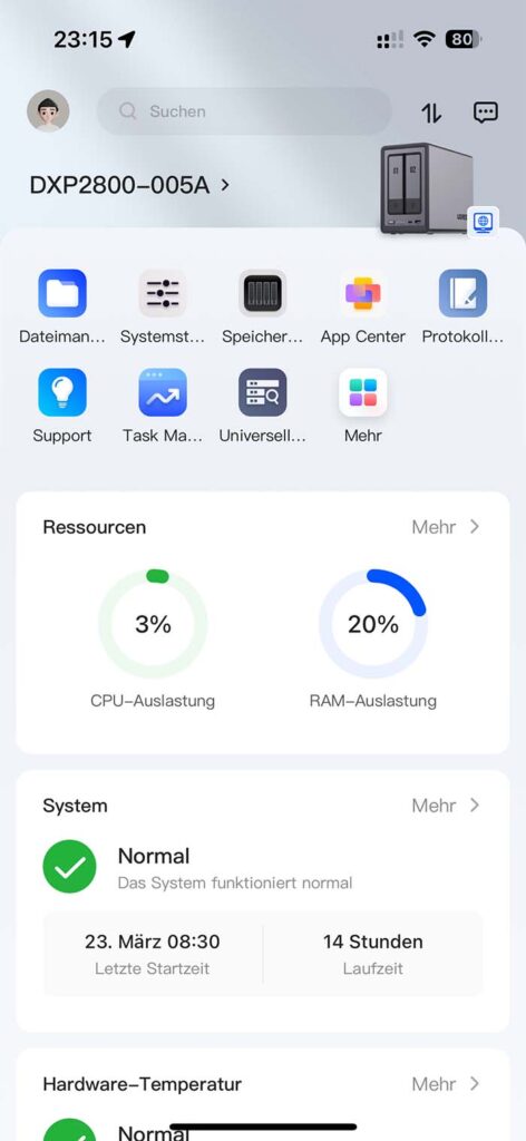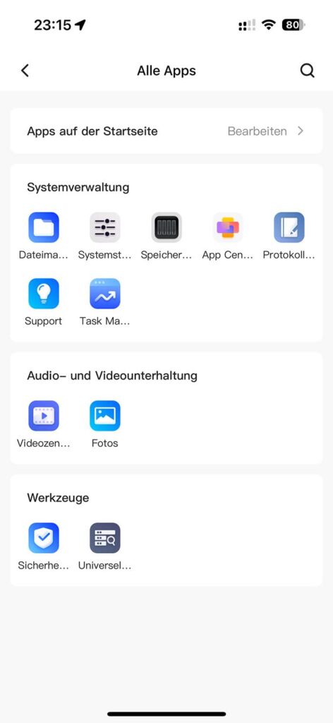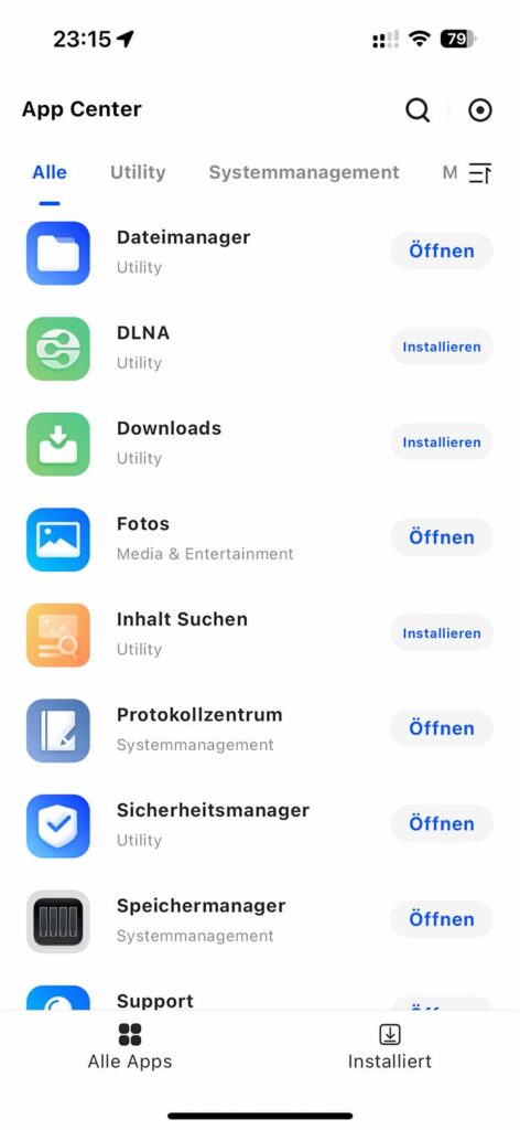 Die App hat mich sehr überrascht, da sie wirklich gut umgesetzt wurde und Zugriff auf alle Funktionen des NAS bietet. So kann man auch via App das NAS starten, herunterfahren, Apps nutzen und vieles mehr.