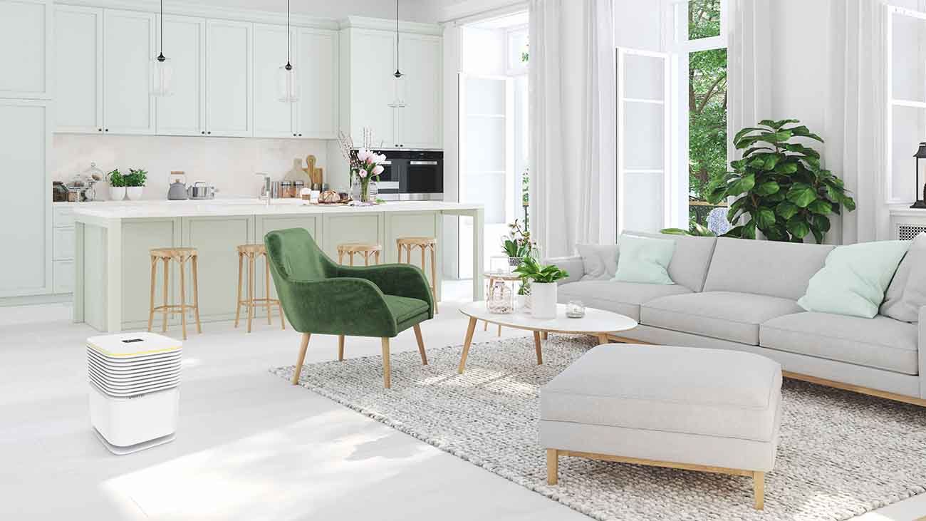 Der neue AeroStyle Compact kann bis zu 99,9 % aller Allergene, Feinstaube, Viren und anderer Partikel bis zu einer Größe von 0,3 μm aus der Luft entfernen und sorgt mit seinem 360° Luftaustritt für eine natürliche Luftverteilung im Raum.