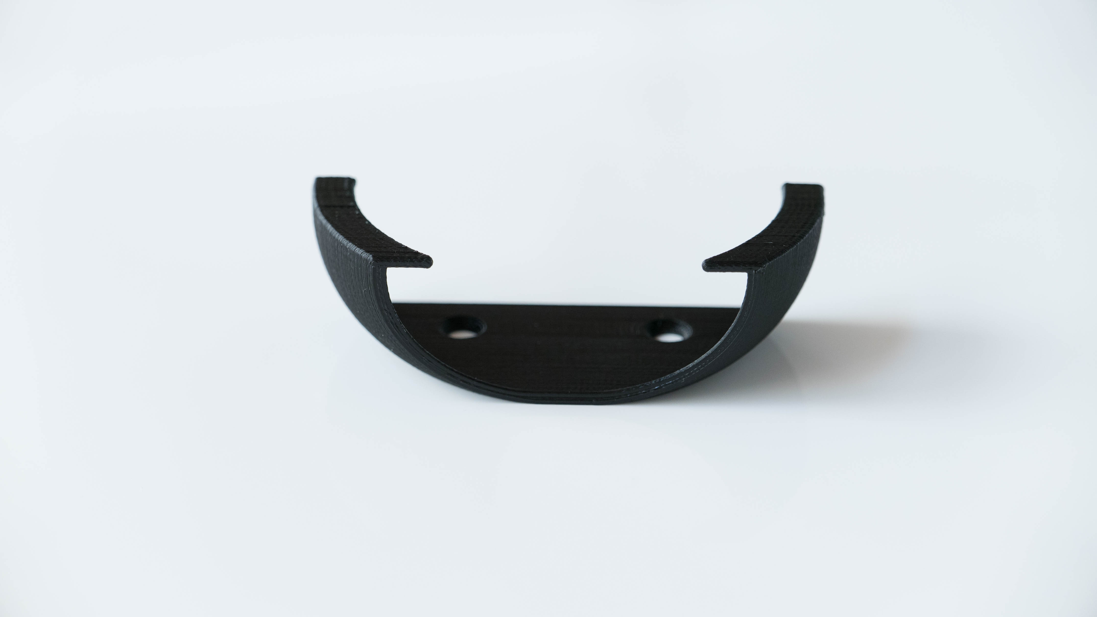 Da die Wandhalterung aus einem 3D Drucker kommt, der mit einer Auflösung von 0.1 mm druckt, hat man eine griffige, leicht linierte Oberfläche. Diese erkennt ihr ganz gut auf den Bildern in der Galerie. Es ist nicht mit der „glätte“ eines Spritzgussteils zu vergleichen. Dies liegt einfach an den unterschiedlichen Fertigungsverfahren.