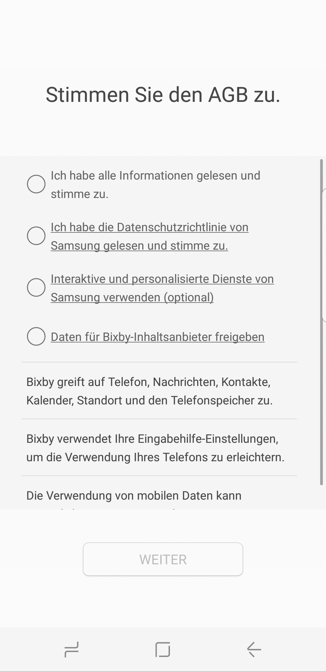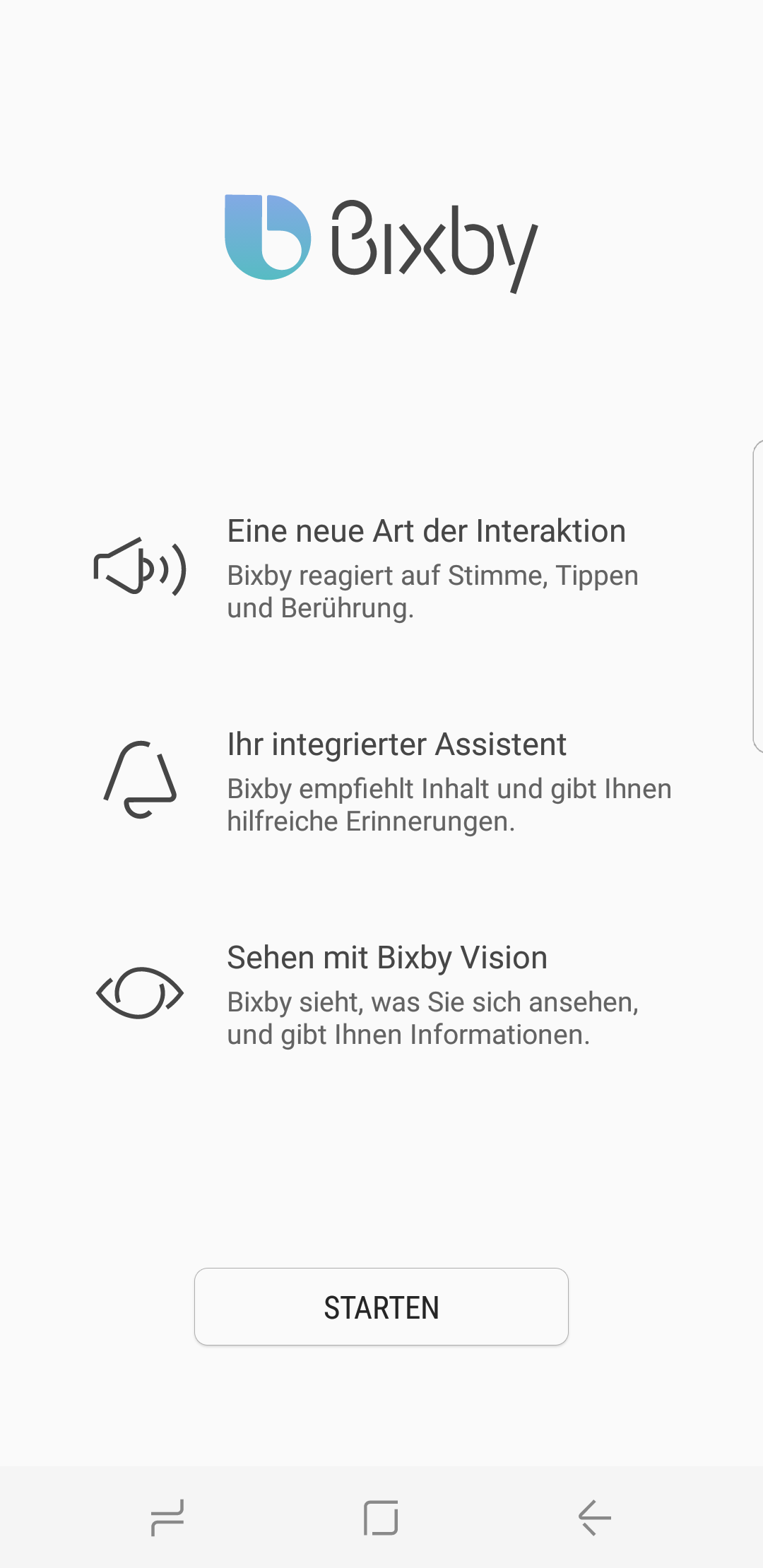 Für den ersten Eindruck, habe ich euch hier mal eine Galerie angehängt. In dieser seht ihr, wie die initiale Einrichtung und der Bixby Startbildschirm aussieht. Mehr gibt es bisher noch nicht zu sehen. Also ein noch sehr spärlicher Funktionsumfang. Darauf gehe ich aber gleich ein.