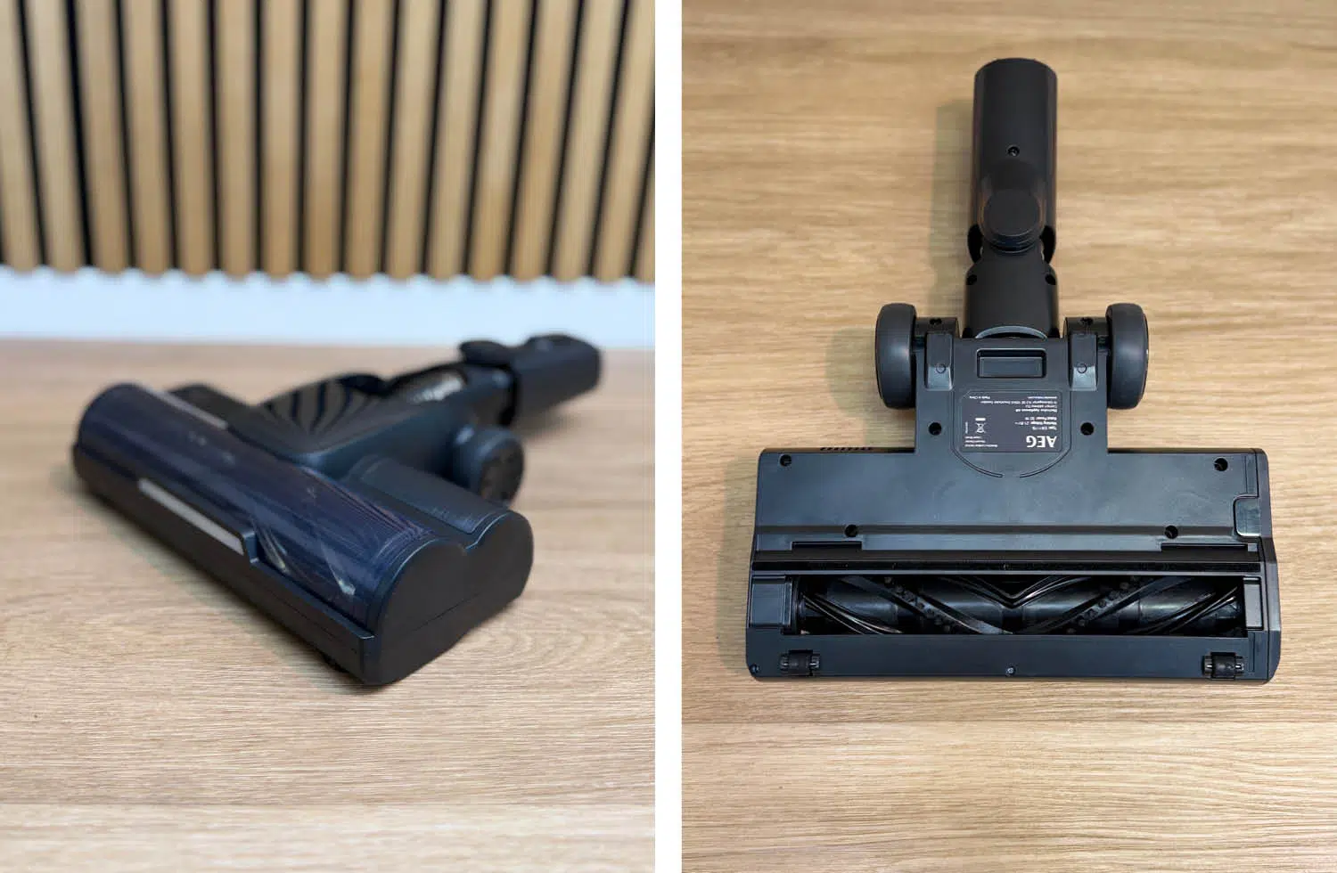 Die mitgelieferte Multibürste des AEG 8000 3-in-1 WET&DRY kombiniert eine motorisierte Bodendüse mit integrierten LED-Lichtern, die dunklere Bereiche entlang von Möbeln besser ausleuchtet. Die Bürste ist als Allround-Lösung ausgelegt und soll sowohl auf Hartboden als auch auf kurzflorigen Teppichen für eine solide Aufnahme von Schmutz, Staub und Haaren sorgen.