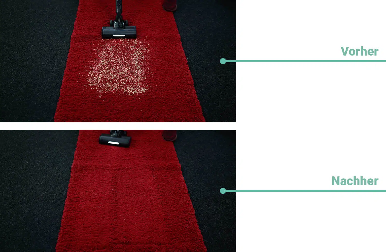 Ab ungefähr 60 g empfehlen wir einen Akkusauger, als teppichgeeignet. Der AEG 8000 3-in-1 WET&DRY hat in unserem Test auf einem hochflorigen Teppich 69,54 g aufgesaugt. Das ist ein gutes Ergebnis, vor allem für ein Kombigerät, welches in allen Reinigungsaufgaben nahezu überdurchschnittlich agiert hat.