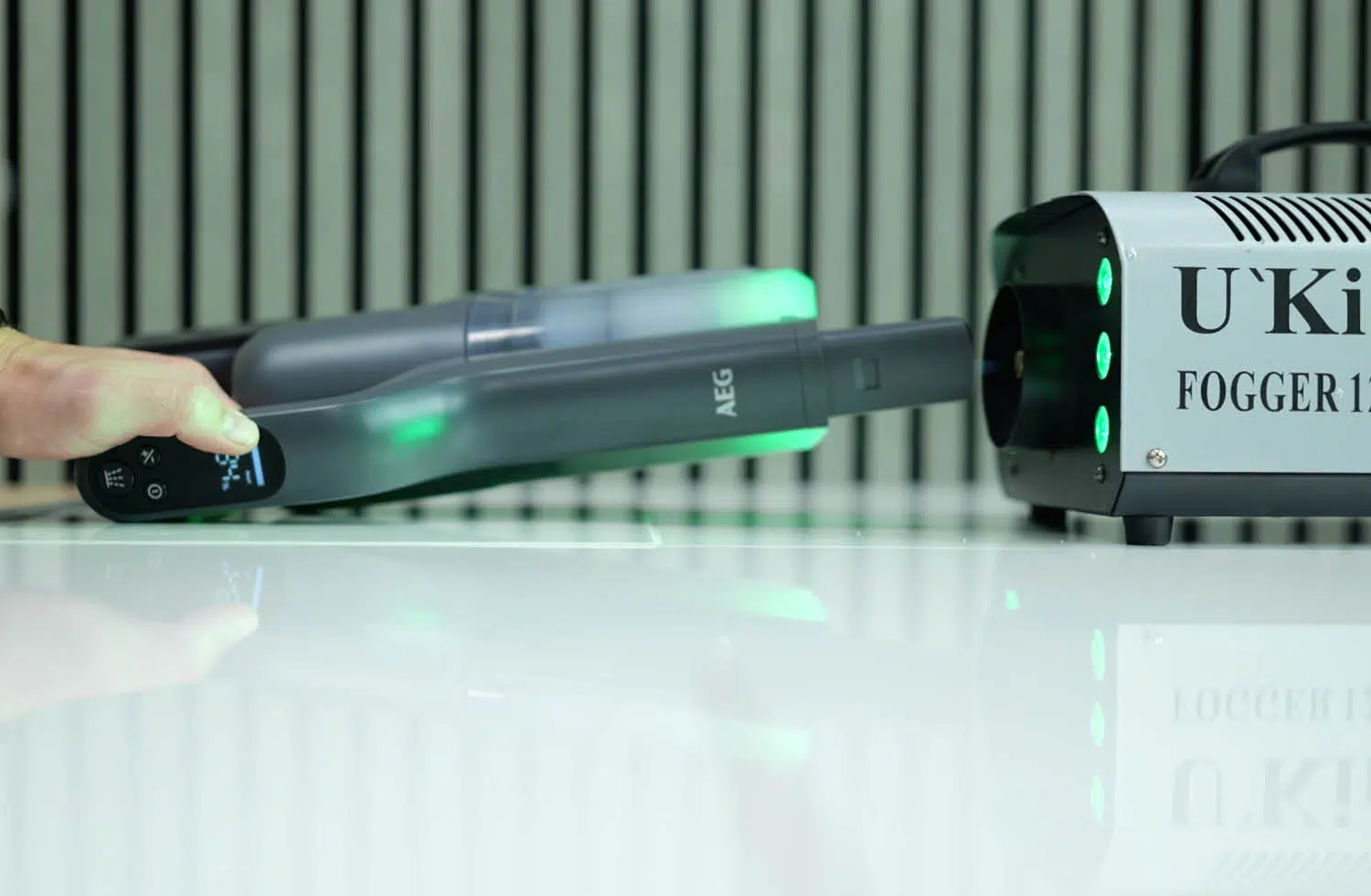 Gerade für Allergiker ist es essenziell, wie gut die Filterleistung ist. Um das zu prüfen, kommt in unserem Test eine Nebelmaschine zum Einsatz, um zu schauen, ob der Filter den Nebel aufsaugt und einschließt oder er aus undichten Stellen wieder ausgestoßen wird. Das Kombigerät von AEG hat diesen Test erfolgreich bestanden und kein Nebel ist ausgetreten.