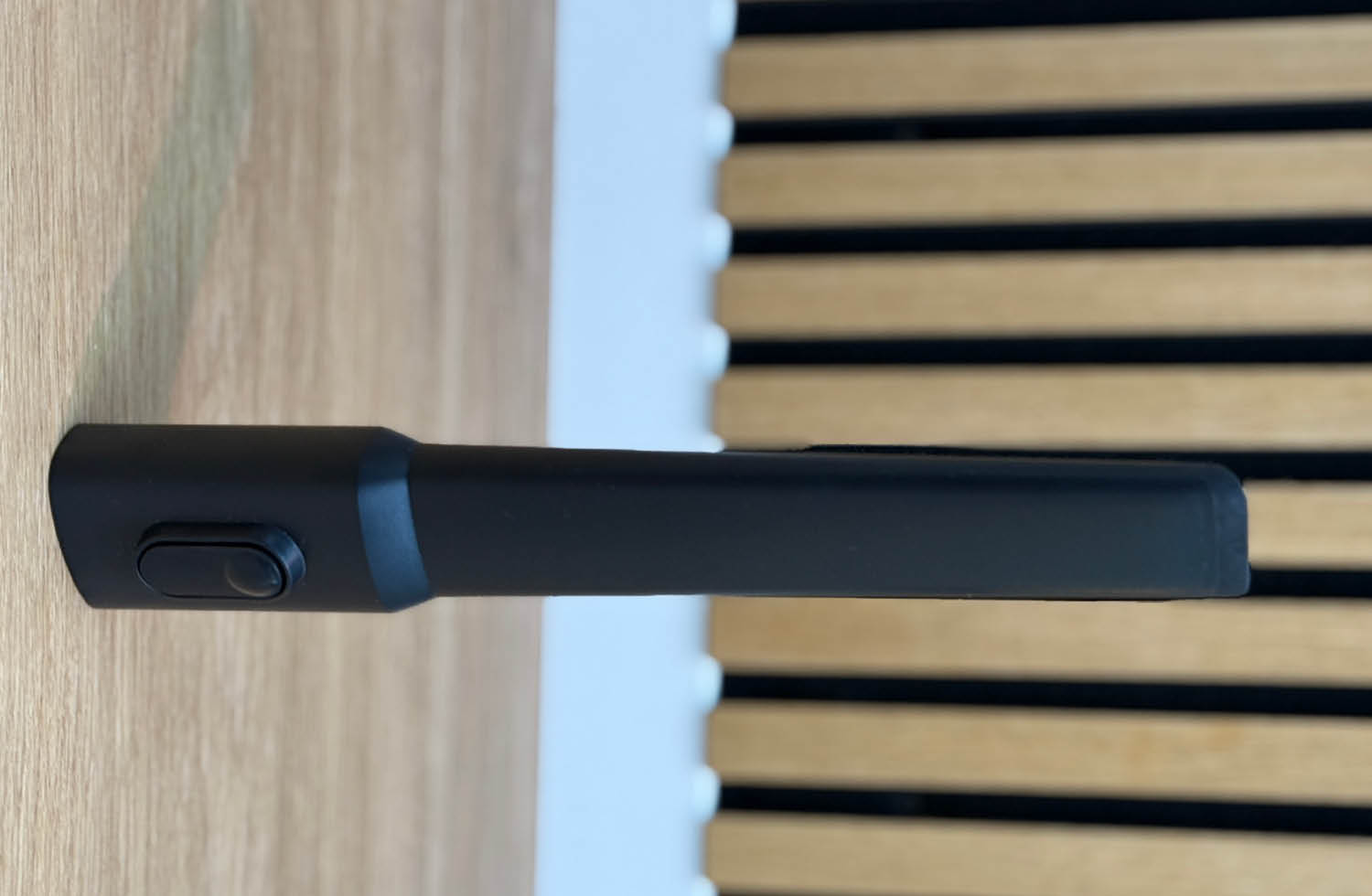 Die Fugendüse ist klassisch gehalten und eignet sich vor allem für schwer erreichbare Bereiche wie Sofaritzen, Ecken, Sockelleisten oder Zwischenräume im Auto. Durch ihre schmale Bauform gelangt sie auch in enge Spalten, in die die normale Bodendüse nicht kommt.