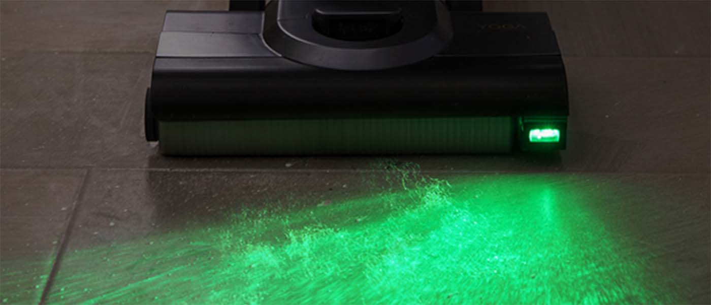 Ein Licht an der Bürste, wie bei vielen Akkusaugern, findet man bei fast keinem Wischsauger. Lenovo geht hier aber sogar noch einen Schritt weiter und implementiert ein grünes Laserlicht, welches man von den neuen Akkusaugern von Dyson, dem V12 und dem V15, kennt. Das grüne Licht macht Staub deutlich sichtbarer, auch in helleren Räumen bei einfallendem Tageslicht. Auch ein Display besitzt das Modell von Lenovo, welches viele Informationen zum Reinigungsvorgang liefert.