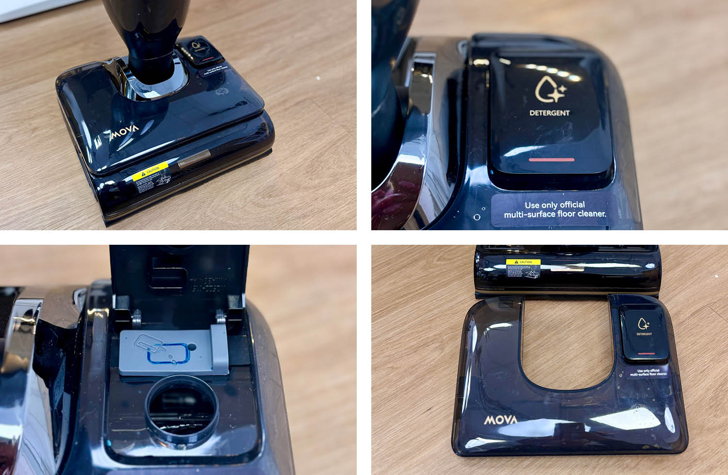 Der Mova M50 Ultra verfügt über einen im unteren Gerätekörper integrierten Frischwassertank, der mit zwei separaten Öffnungen ausgestattet ist. Eine Öffnung dient zum Befüllen mit klarem Wasser, die zweite ist für die Zugabe von Reinigungsmittel vorgesehen. Dadurch lässt sich die Reinigungslösung gezielt dosieren, ohne diese direkt mit dem Wasser vermischen zu müssen.