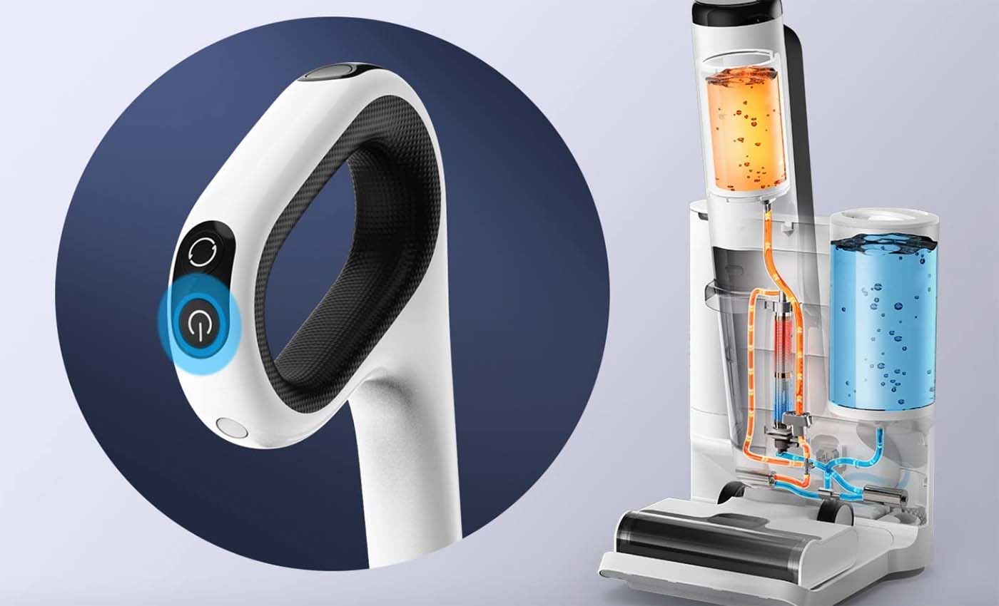 Das Wasser wird übrigens mit 60 Grad auf den Boden abgegeben und soll so auch festgetrockneten Schmutz deutlich besser entfernen können.