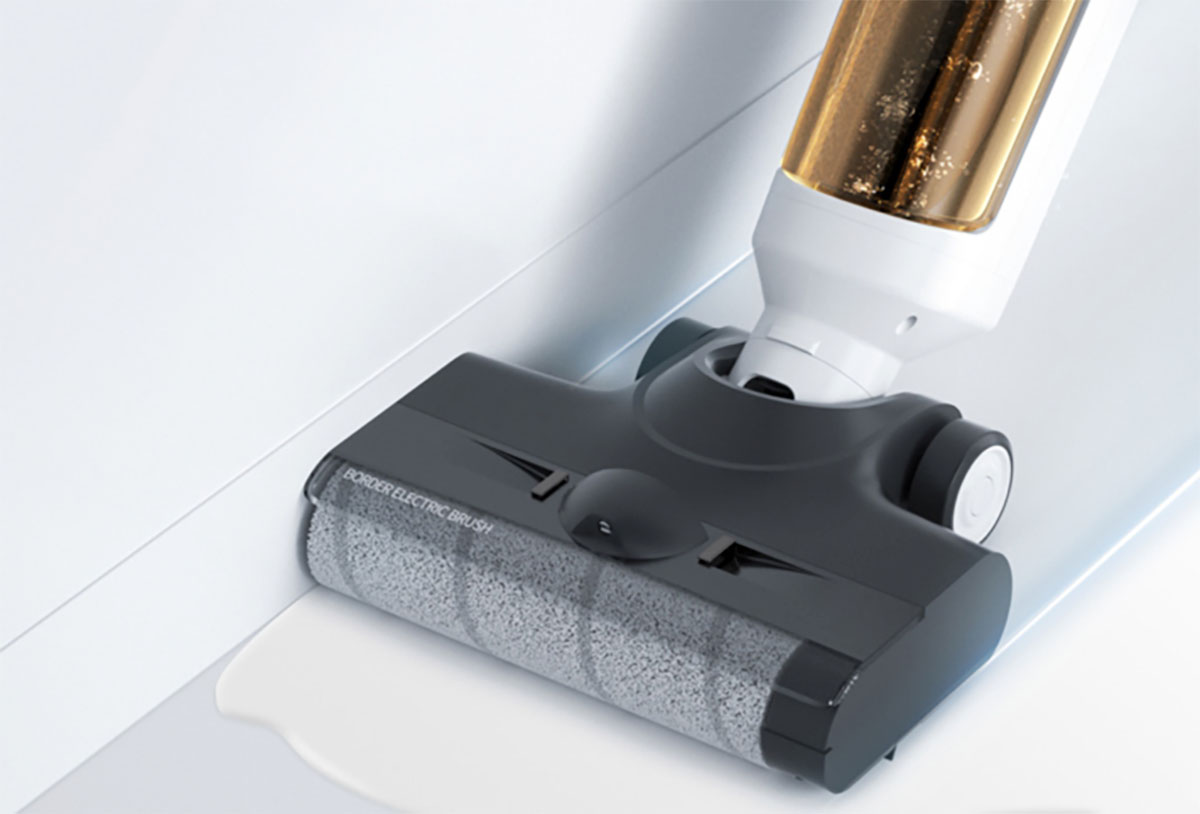 Das Display und die darauf zu sehende Menüführung ist dem Tineco S5 schon recht ähnlich und auch der längliche Wassertank auf der Rückseite des Wischsaugers erinnert an die Konkurrenz. Auch bei der Kantenreinigung setzt Roidmi auf eine Bürstenrolle, welche an der rechten Seite bis ganz an eine Kante heran reinigen kann.