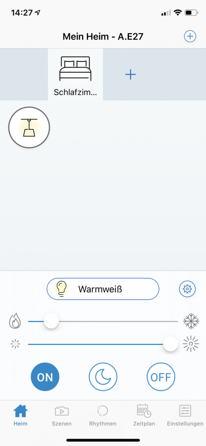 Nun habe ich die smarte Glühbirne WiZ ConnectedLight schon ein paar Tage in meiner riesengroßen IKEA Lampe im Schlafzimmer im Einsatz. Der große Vorteil dieser Leuchte besteht darin, dass diese keine zusätzliche Bridge benötigt, wie beispielsweise die Leuchtmittel von Philips Hue. Das heimische WLAN genügt. Durch die hauseigene WiZ App ist die smarte Glühbirne bei eingeschaltetem Licht umfangreich steuerbar. Auch am Lichtschalter selbst kann man sie auf unterschiedliche Art und Weisen steuern. Es ist möglich, durch doppeltes Betätigen des Lichtschalters, verschiedene Lichteinstellungen wiederzugeben.