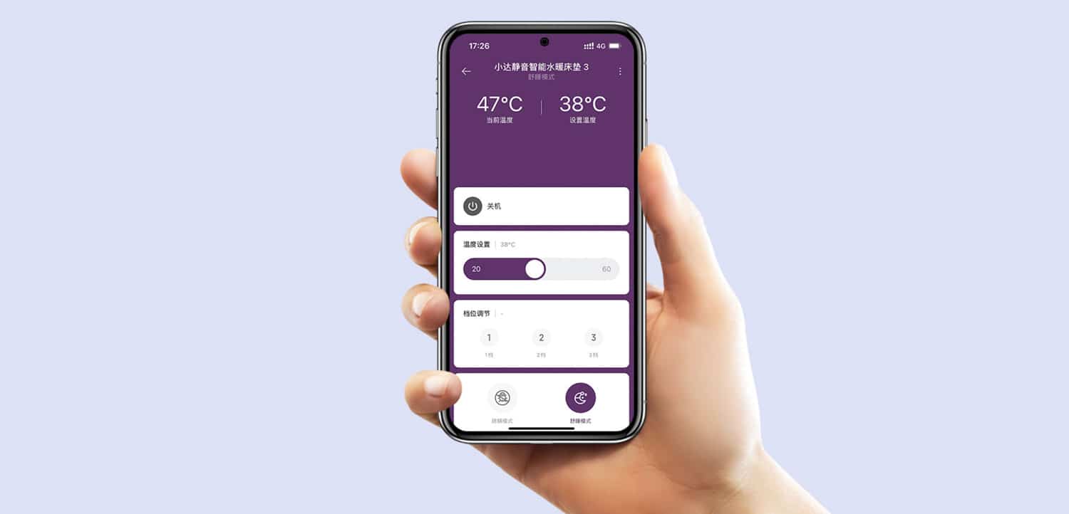 Selbstverständlich lässt sich die Matratzenauflage aber auch in die Xiaomi Home App einbinden und dann ist die Temperatureinstellung sogar zwischen 20° und 60° Celsius stufenlos verstellen. Zudem kann man einen Schlafmodus einstellen, der die Temperatur ideal zum Schlafen reguliert.