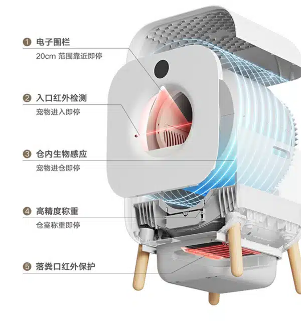 Darüber hinaus hat die Xiaowan Katzentoilette das Zertifikat „Pet Safety“ des TÜV Rheinland Greater China erhalten. Sie verfügt über mehrere Sicherheitsfunktionen wie zum Beispiel Infraroterkennung am Eingang, Biosensorik im Depot, hochpräzises Wiegen und vieles mehr.