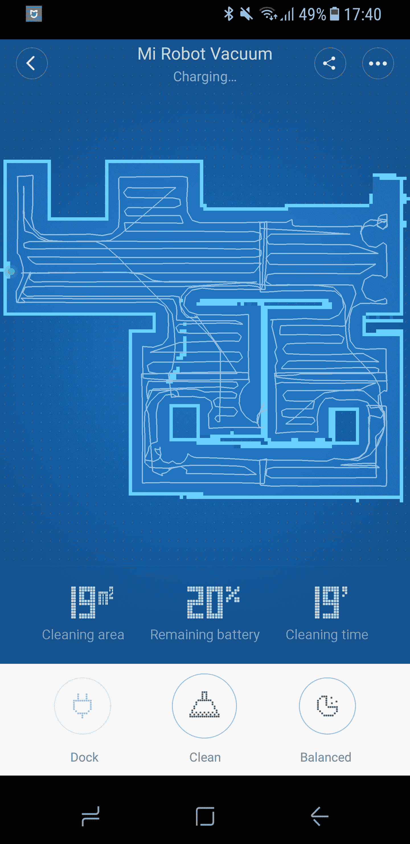 Die Steuerung ist wirklich sehr einfach gehalten. Ihr habt in der App 3 Knöpfe, um den Mi Staubsauger Roboter zu steuern. Diese seht ihr auch oben in der Galerie unterhalb des 4. Bilds. Der erste Knopf ist dazu da, um den Mi Staubsauger Roboter zurück ans Dock zu schicken. Der mittlere startet ihn und der letzte stellt noch die Saugkraft ein.