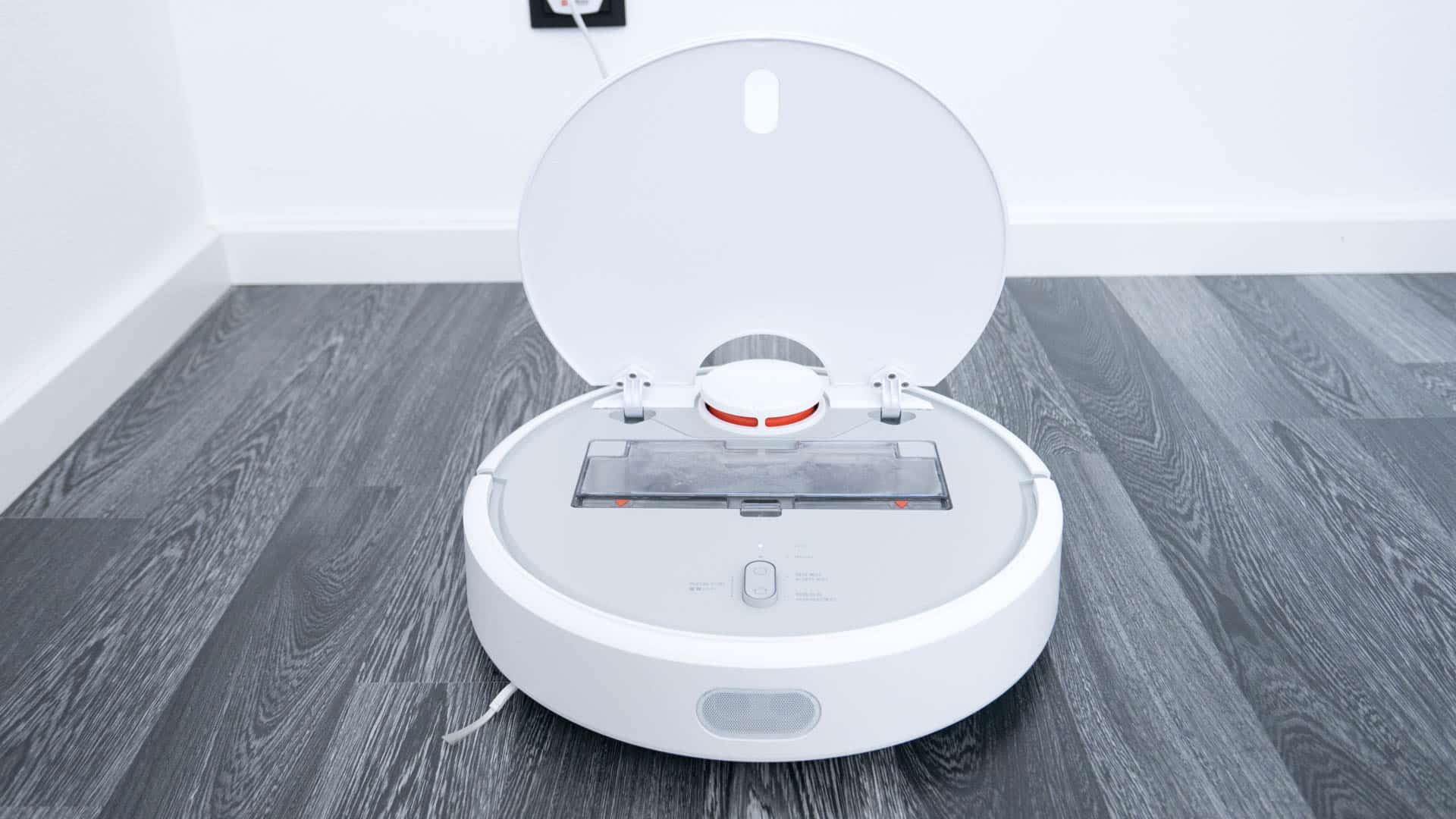 Auf dem Mi Staubsauger Roboter selbst, findet man nur einen Wippschalter. Der Power Button schaltet das Gerät ein und schickt es dann mit einem weiteren Klick zum Saugen. Der Home Button lässt ihn dann wieder zurück zu seiner Station kehren. Es ist wirklich alles sehr simpel gehalten. Mehr Knöpfe benötigt man meiner Meinung aber auch nicht.
