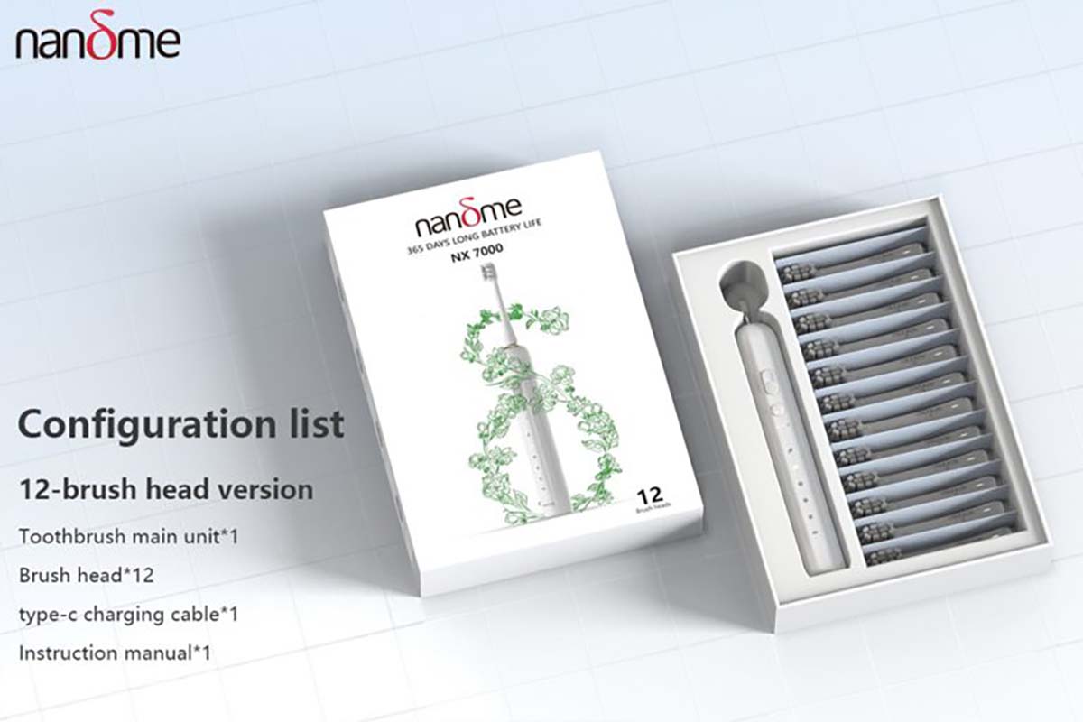 Nandme stattet jede NX 7000 mit 12 einzelnen Bürstenköpfen aus. Man kann die Bürstenköpfe alle drei Monate wechseln, wie vom Zahnarzt empfohlen, insgesamt also 3 Jahre lang. Der rechtzeitige Wechsel der Bürstenköpfe trägt zur Mundhygiene bei und verhindert, dass sich im Laufe der Zeit Bakterien in den Borsten festsetzen.