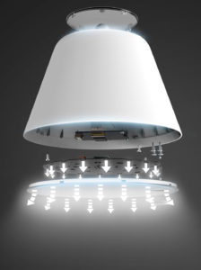 Die Stehlampe soll eine normale Lampe durch mehrere verbaute LEDs nachahmen. Dadurch wird der charakteristische Lichtkegel erreicht und man kann sie kaum noch mit einer herkömmlichen Stehlampe unterscheiden. 16 Millionen Farben kann sie wiedergeben und erreicht einen Farbtemperaturbereich von 2700 – 6500K.
