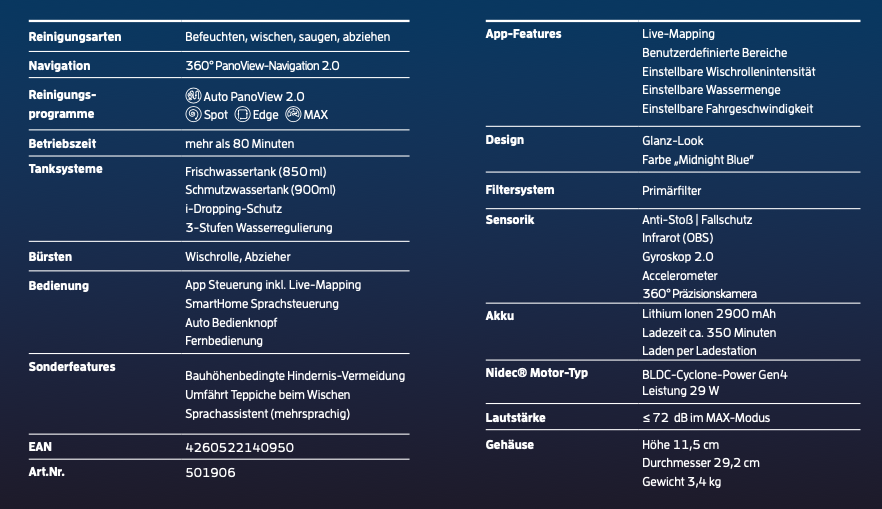 Der W450 ist im Aufbau zum Modell von Medion fast identisch. Allerdings besitzt der W450 eine Panovision-Kamera, welche seine Navigation deutlich verbessert. Zudem ist nun auch die Steuerung per App möglich, wodurch weitere neue Features hinzugekommen sind. So kann man den Reinigungsweg des ZACO Wischroboters in der App live verfolgen und diverse Parameter der Reinigung konfigurieren. So kann man die Fahrgeschwindigkeit, die Drehgeschwindigkeit der Bürstenrolle und auch die Wassermenge in der App einstellen.